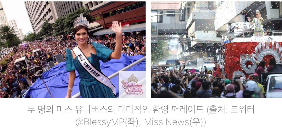 필리핀은 국위선양한 사람들에 대한 예우가 특별하다. 가장 대중적인 이벤트 중 하나가 바로 미스유니버스인데, 필리핀에게 세계 최고의 타이틀을 달게 해주는 몇 안되는 세계적인 이벤트이기 때문이다. 그녀들이 미스 유니버스가 되는 해에는 티비 광고, 드라마, 전광판에는 그녀들의 얼굴로 도배가 되며, 또 미스유니버스 이벤트가 끝나고 처음 필리핀에 방문할 때에는 우리나라의 테헤란로 같은 시내의 가장 중심지에서 대대적인 퍼레이드를 한다. 필리핀에게 백년만의 첫 올림픽 금메달이라는 영예를 안겨준 하이딜린 디아즈가 도쿄에서 마닐라로 돌아오는 날, 필리핀 사람들이 얼마나 크고 화려하게 그녀를 반겨줄지 무척 기대가 된다. 그동안의 미스 유니버스와는 달리 그녀는 그녀의 금메달뿐만 아니라 그녀의 스토리로 필리핀 사람들의 마음에 깊게 남을 것 같다.