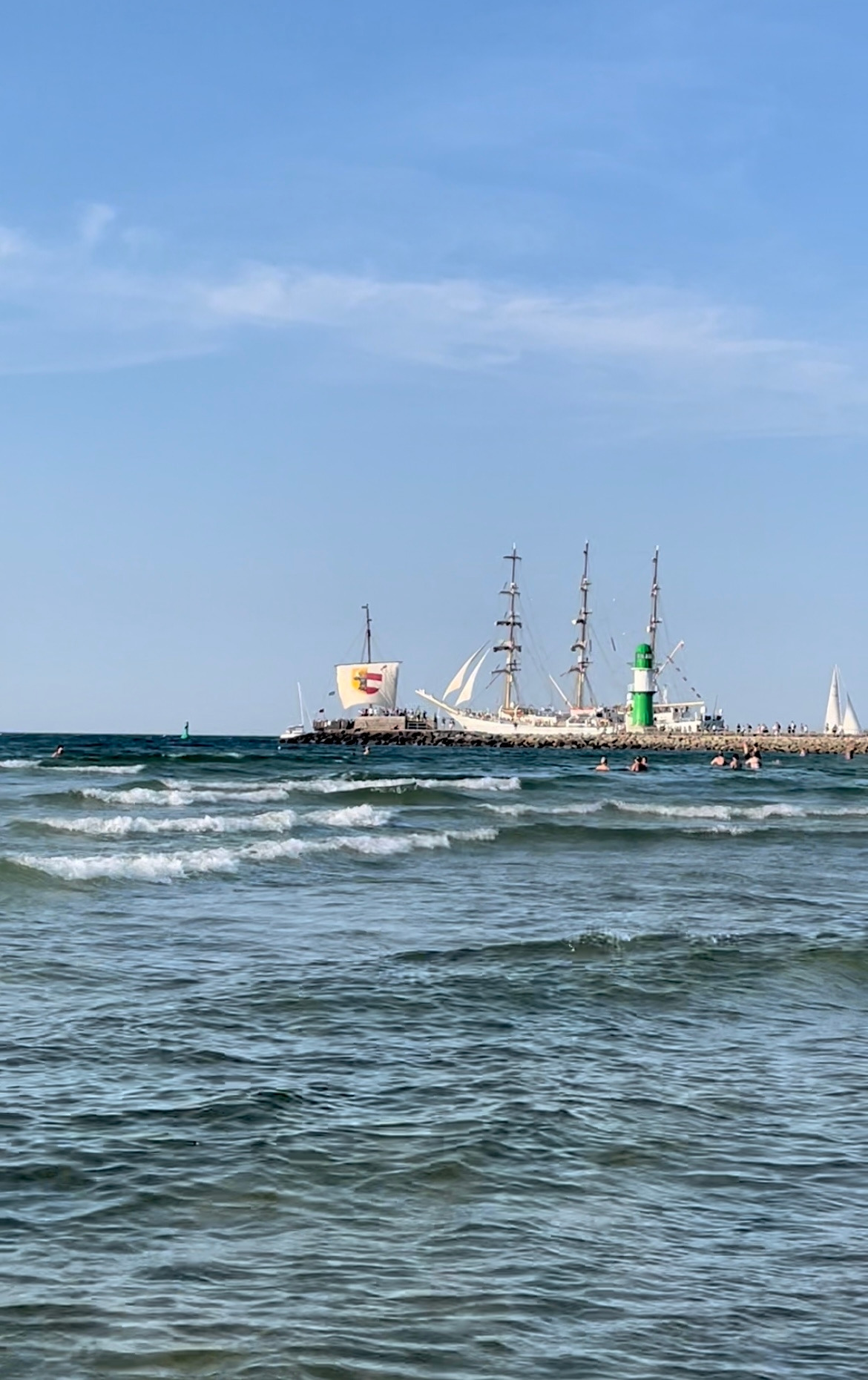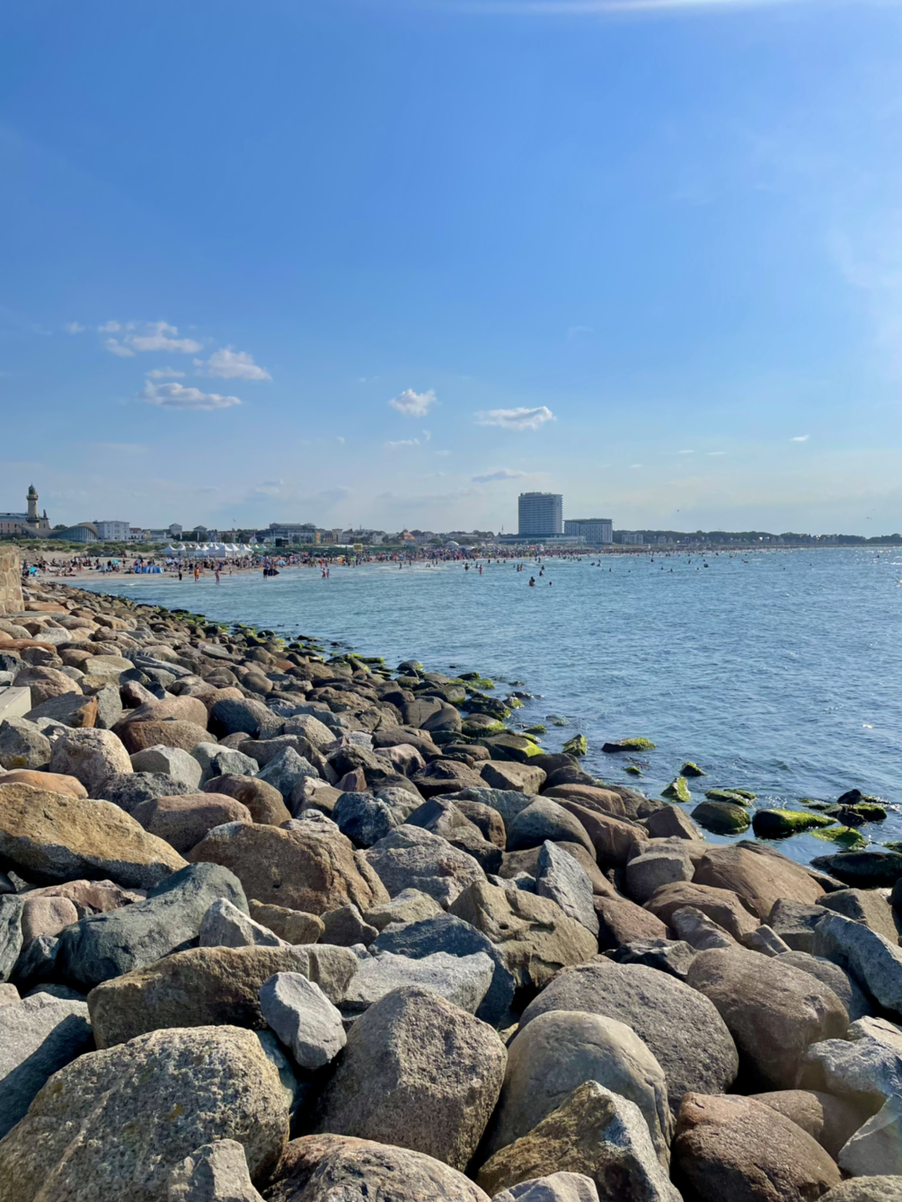 그렇게 겨우 감사하게도 앉아서 도착하게된 발틱해에 맞닿은 독일 북쪽 끝 항구 도시 중 하나인 로스톡에 우리는 도착했다. 오랫만에 맡는 바다냄새가 목포 냄새같기도 하고 케이프타운, 필리핀 냄새 같기도 해서 그리운 것도 같았다. 그렇게 바다 냄새를 은은하게 맡으며 도시 구경을 하다가 다시 전철을 타고 해변으로 간 우리 앞에 시원하고 푸른 발틱해가 펼쳐졌다.