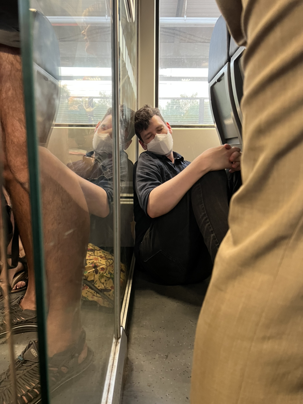 짧지만 알찼던 로스톡 당일치기 여행이 끝나고 우리는 다시 베를린으로 돌아가는 기차를 잡아야 했다. 베를린 역에서 겪은 혼돈을 알고 있어서 나름 일찍 간다고 나섰지만 자리 잡는 것은 실패. 그나마 불행 중 다행으로 열차 칸 맨 뒷 자석 뒤에 있는, 그나마 비집고 들어갈 수 있는 구석을 하나씩 발견했다. 둘이 마주보며 의자 뒷 공간에 몸을 하나씩 구겨 넣는데 눈 깜짝할 사이 남편과 내 자리 사이의 통로까지 서서 가는 사람들의 인파로 기차는 가득 차버렸다.