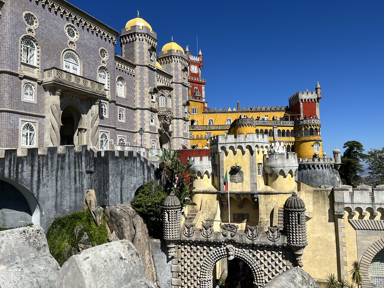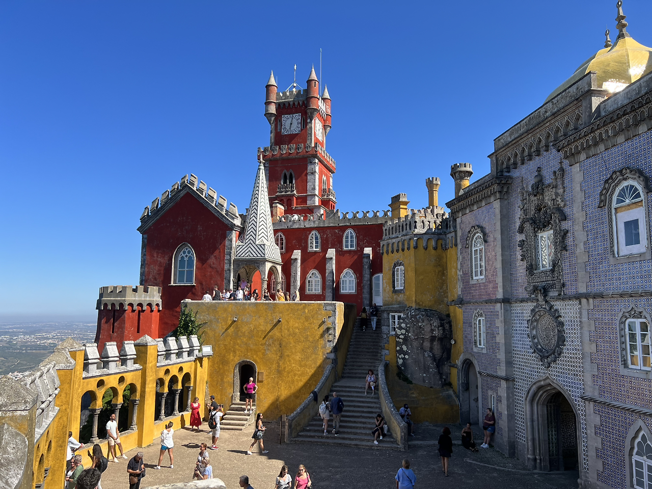 가이드 아저씨가 말씀하신 1시 이전까지 우리는 최대한 시간을 맞춰보려 했고, 또 어떻게 운이 좋아 성 안까지는 들어가 볼 수 있었지만, 심지어는 성 안에서도 사람들이 빼곡히 일렬로 줄을 서서 방 안을 구경하는 것을 보고 우리는 그냥 성 밖이라도 둘러보고자 줄을 이탈해서 나와 버렸다. 페나성 바깥의 건축 양식과 성 밖으로 보이는 신트라 주변의 풍경 역시 여기까지 와서 놓치면 안 될 절경 중 하나였긴 했지만, 한 편으론 몇 시간보다 훨씬 더 길어진 줄을 보며 무언가 아쉬운 마음도 들면서 성 아래로 내려왔다.