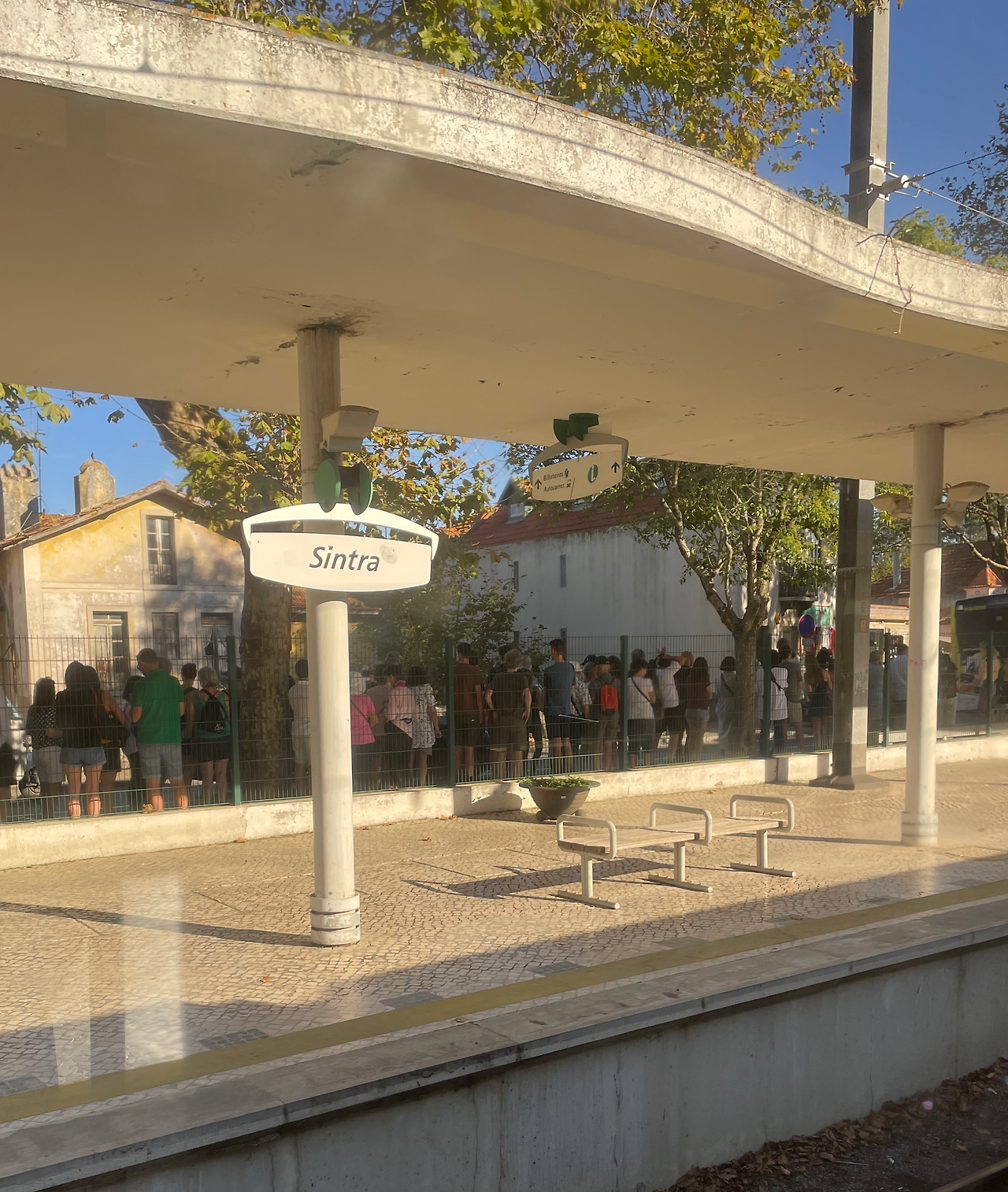 그렇게 우리는 신트라 역에서 만나 카스카이스 역에서 투어가 끝나는 당일 투어 프로그램을 신청하고 신트라로 향했다. 생각보다 리스본에서 멀지 않은 신트라 역에 내렸을 때, 우리는 수많은 인파에 적잖이 당황했다. 투어 프로그램을 신청한 사람들은 이미 각자 개인 투어 가이드들과 함께 개인차를 타고 이동을 했을 것을 감안하고도 신트라 역 앞의 페나성 행 시내버스 정류장 앞에는 기다란 줄을 선 사람들을 장사진을 이루고 있었다.