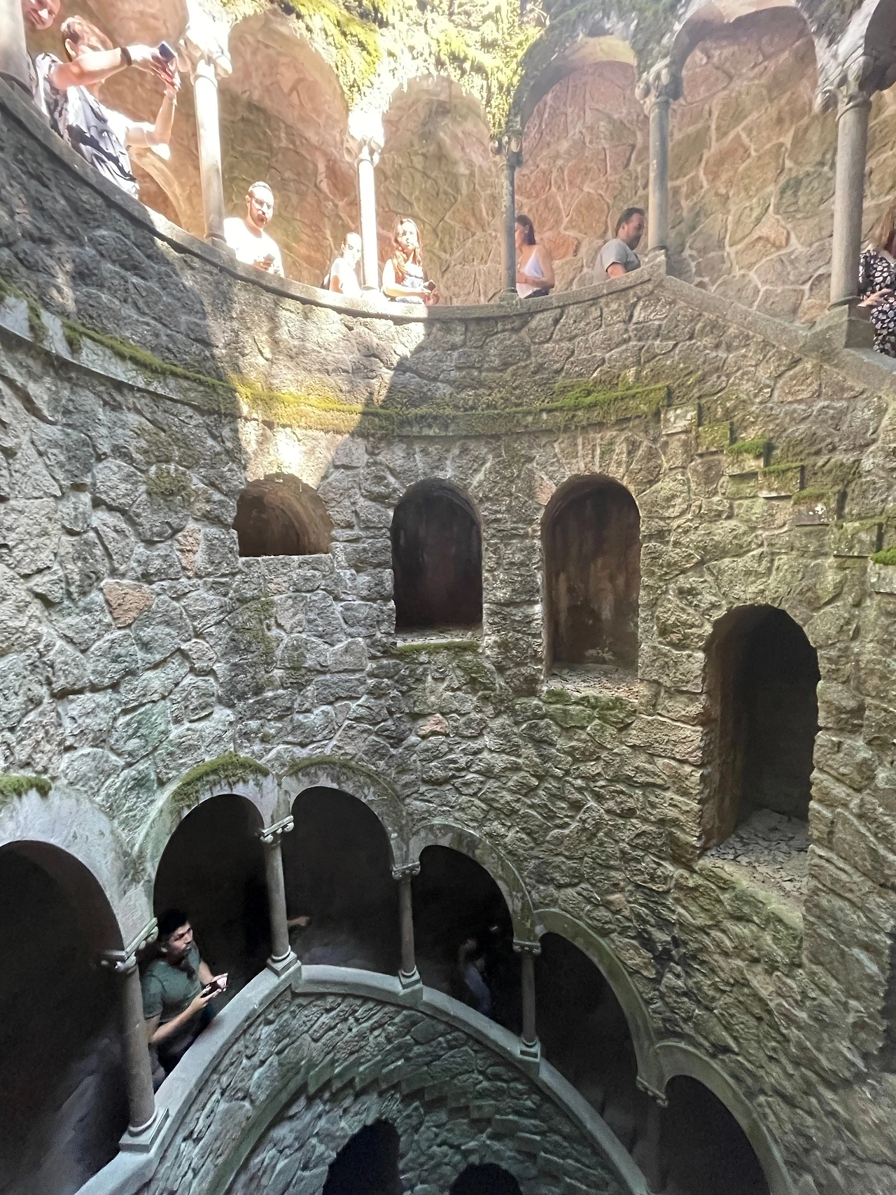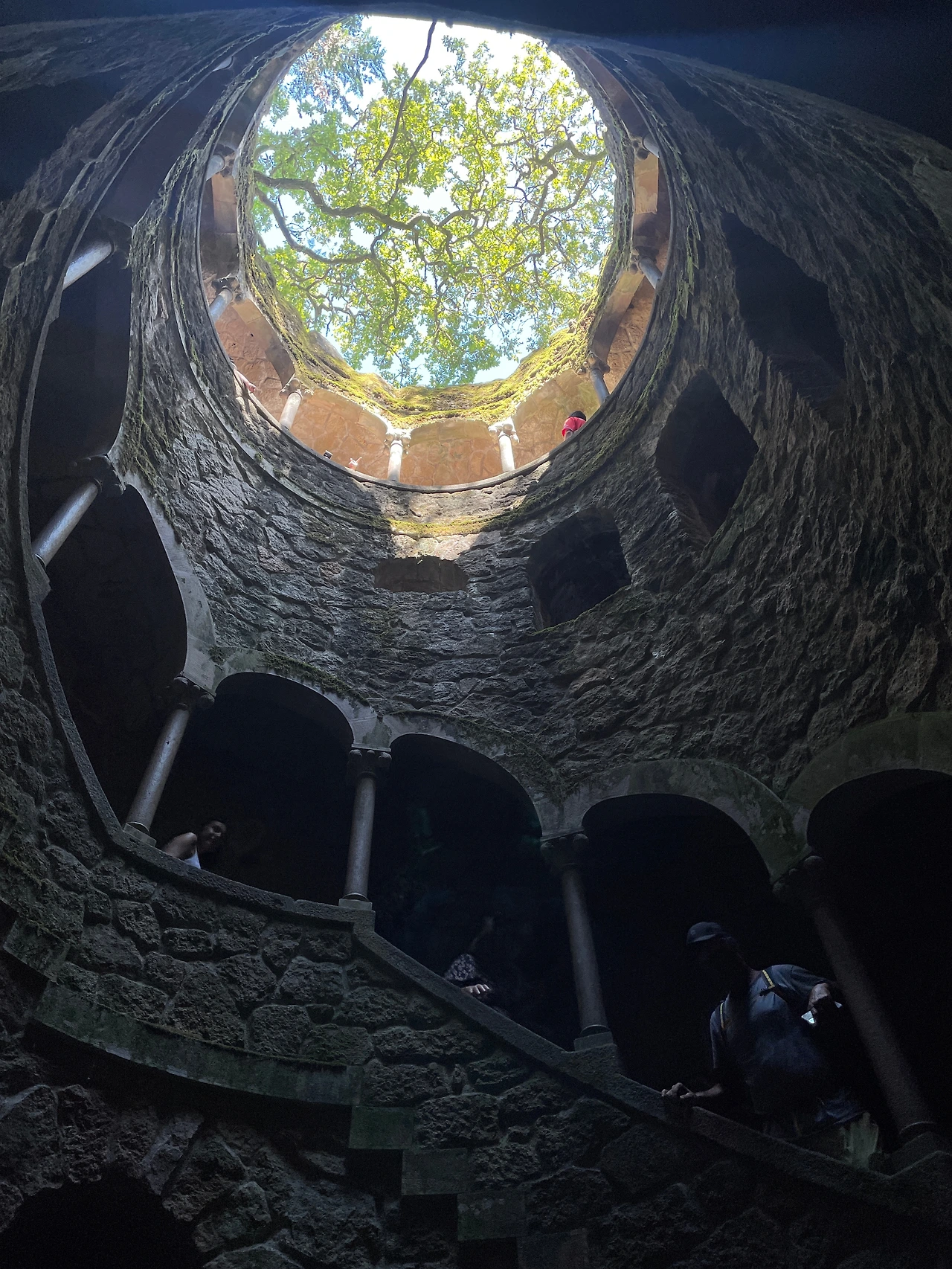 그렇게 한참을 기다려 찾아가게 된 헤겔레이아 별장. 이곳은 가이드 아저씨께서 조금 기다리더라도 개인적으로 꼭 보여주고 싶고, 기다릴만한 가치가 있는 곳이라고 하셔서 함께 들어가기로 했다. 신트라를 검색하면 페나성과 함께 언제나 등장하는 둥근 스파이럴 모양의 계단 동굴이 이 별장에 있었다. 줄이 있었지만 페나성보다는 훨씬 적어서 수월하게 그 계단으로 들어서는데 초록 이끼가 신비롭게 서린 인디아나 존스 영화 촬영지나 앙코르와트의 포르투갈 버전 같은 느낌을 들게 했다. 어떻게 보면 유럽의 수많은 종탑을 올라서기 위해 돌아가며 올라가는 작은 계단 같기도 한데, 이 탑의 특징은 계단이 올라가기 위해 만들어진 것이 아닌 내려가기 위해 만들어졌다는 것. 햇살을 듬뿍 받으면서 계단에 들어갔다가 어둠 깊은 동굴로 나오기 때문에 더 신비스러운 느낌을 더하는 것 같았다. 실제로도 의식을 위해 만들어졌다는데 아홉 번의 원을 돌면서 내려가는 계단은 단테의 신곡에서 나오는 천국과 지옥을 상징한다고도 알려졌다.