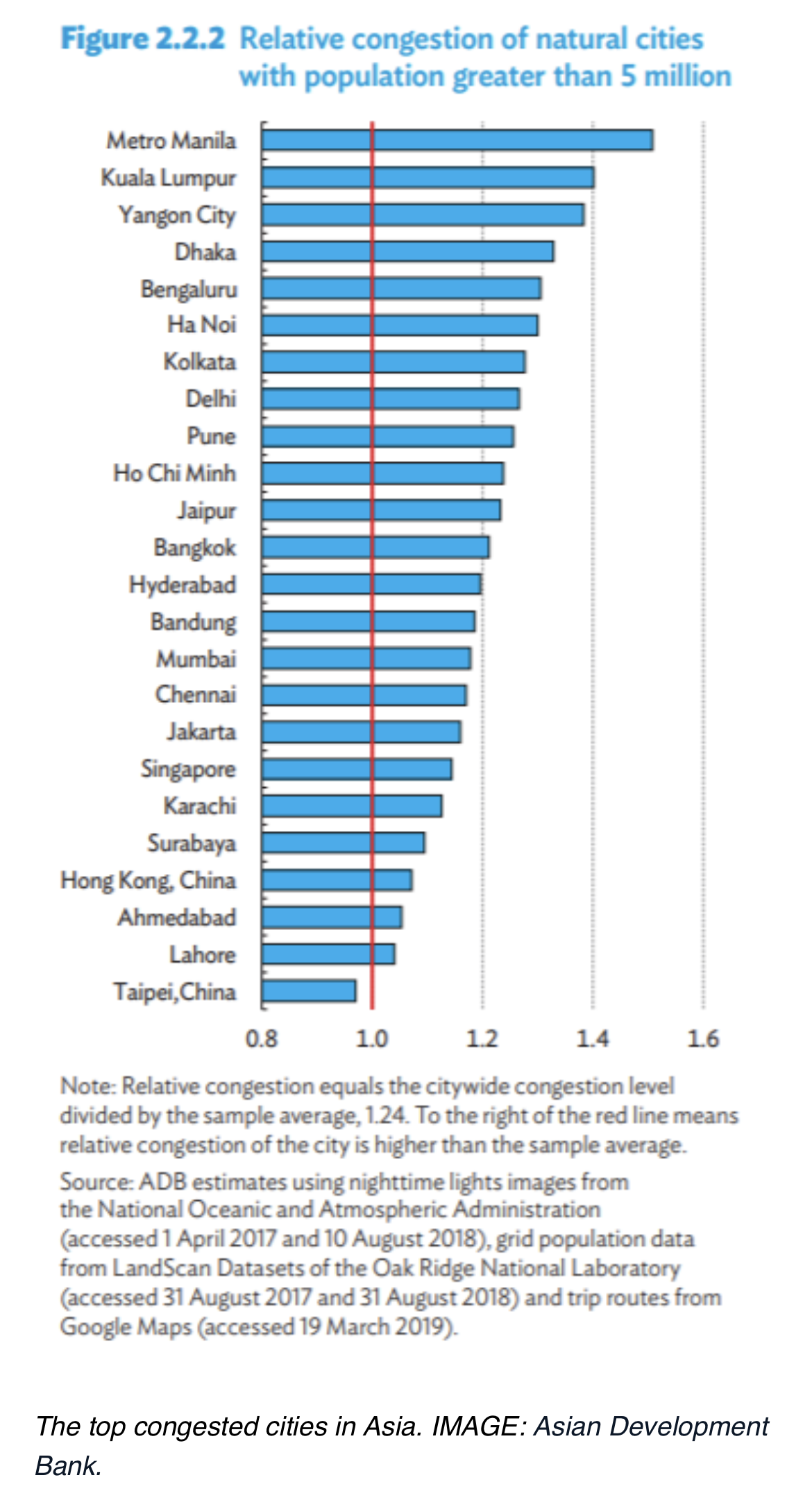 다른 동남아 친구들에게 이 자료를 보여준다면 또 왈가왈부할 요소들이 여전히 남아있다는 것을 알지만, 2019년에 발표된 아시아 개발은행의 자료에서는 필리핀의 마닐라가 동남아시아 국가들의 5백만 명 이상이 살고 있는 도시들 중에서는 가장 최악의 교통체증을 가진 나라로 집계되었다. 필리핀 마닐라의 뒤를 이어 말레이시아의 쿠알라룸푸르, 미얀마의 양곤, 베트남의 하노이와 호치민, 그리고 인도네시아의 반둥과 자카르타가 그 뒤를 이었다.