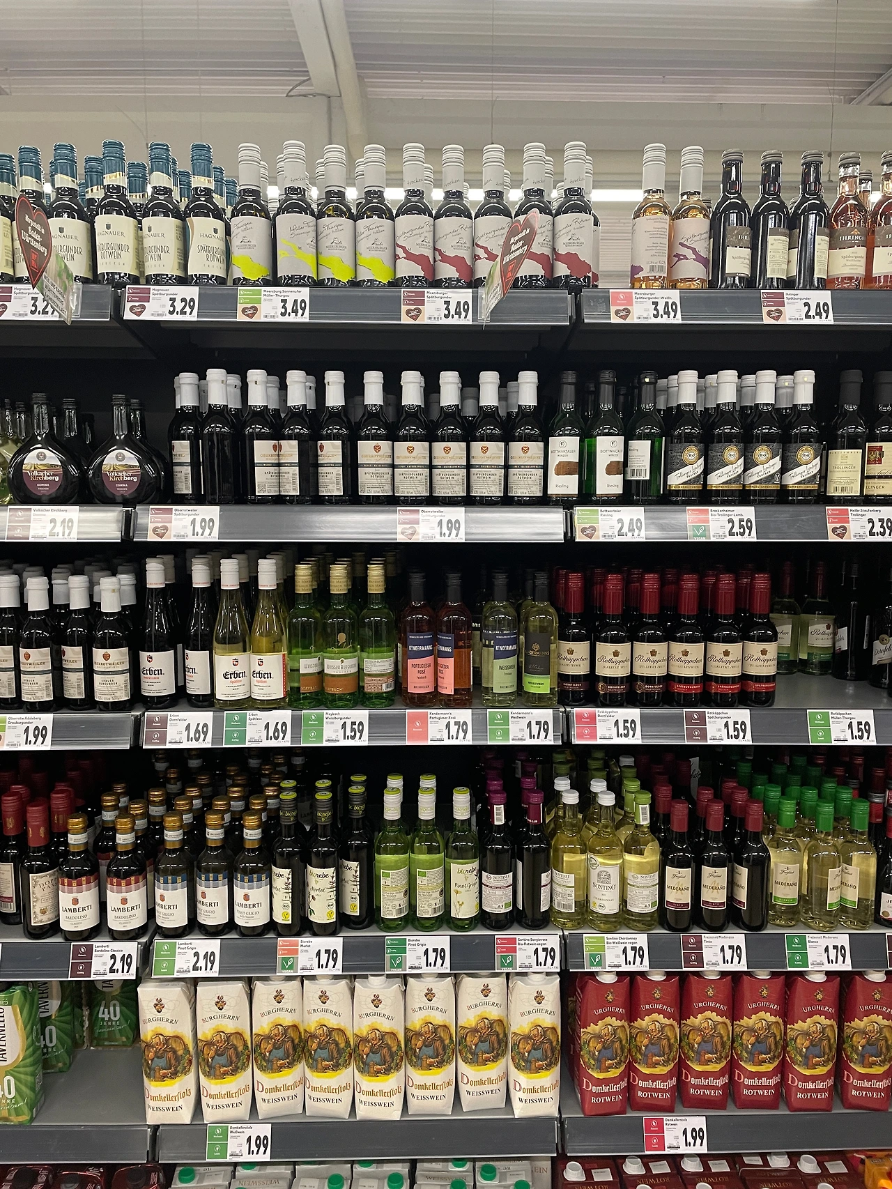 슈퍼마켓들이 많아서 세일을 하는 품목들이 다양하고, 특히 와인을 좋아하는 사람들이라면 보덴제가 속한 바덴 뷔텐부르크 지역이 독일산 와인의 최대 생산지라서 이 지역의 다양한 와인들을 슈퍼마켓에서도 쉽게 찾아볼 수 있으니 시도해 보시길 바란다.