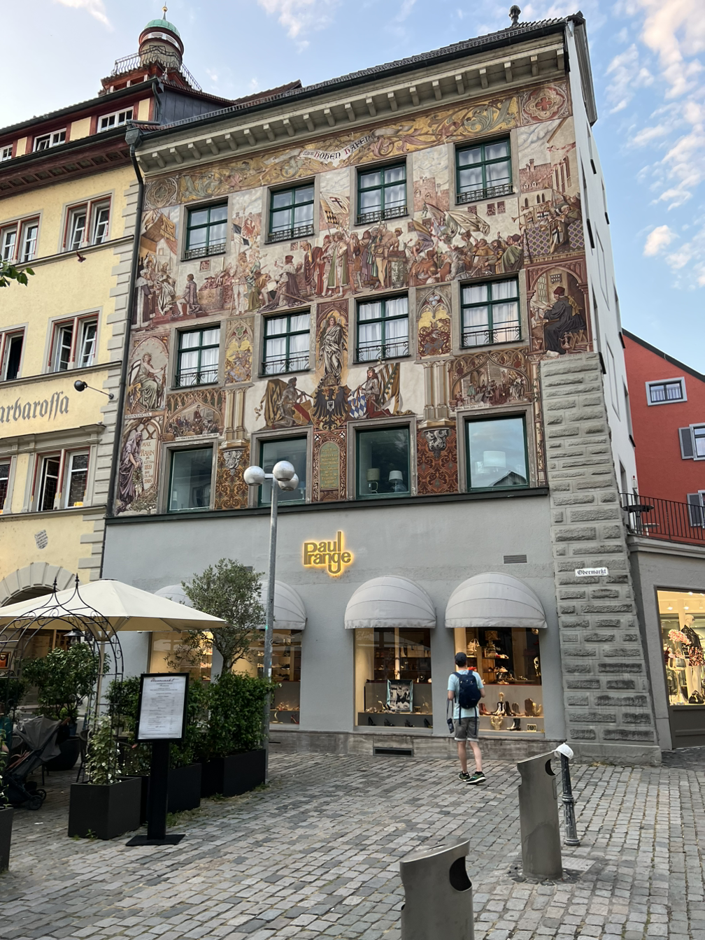 그리고 그 선착장 바로 맞은편에 세계사 속 콘스탄츠 공의회가 열렸던 그 건물이 여전히 서있다. 지금은 음식점과 연회장으로 사용되고 있다는데, 이렇게 푸른 호수 앞에서 세계사에서도 오르내리는 중세 교황들의 미래를 결정했다니 말을 해주지 않았다면 그냥 지나치고 말았을지도 모르게 지금까지 주변 풍경과 잘 어울려 사용되고 있는 듯했다.