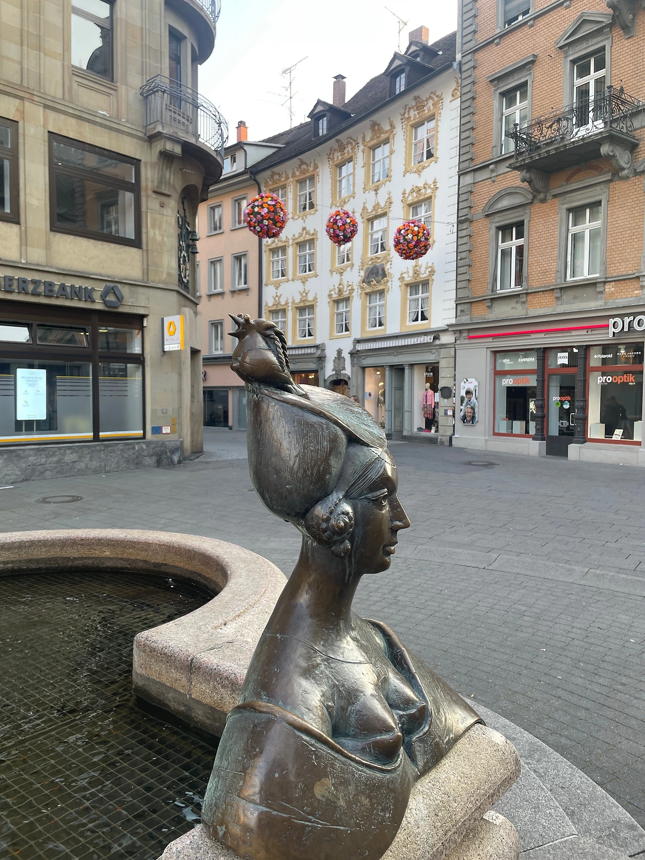 한 손 위에는 황제와 다른 한 손 위에는 교황을 올려둔 임페리아라는 여성 동상은 콘스탄츠 공의회를 풍자했다고 하는데, 동상은 천천히 360도를 회전하기 때문에 그 모습을 보기 위해 사람들은 이곳에 가만히 머물러 있는다.