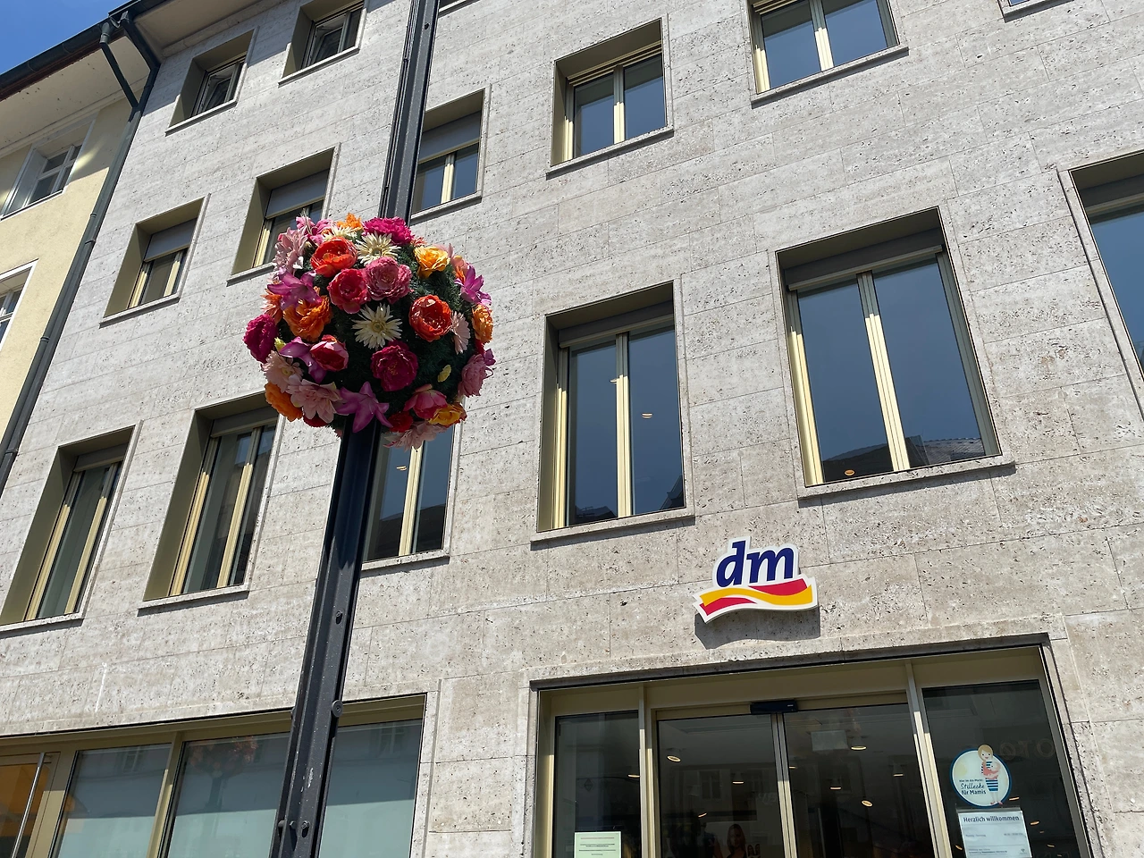 독일 어디를 가나 볼 수 있는 데엠(dm)인데, 데엠이 이렇게 예쁠 일인가 싶게 꽃뭉텅이가 입구를 장식한다.
