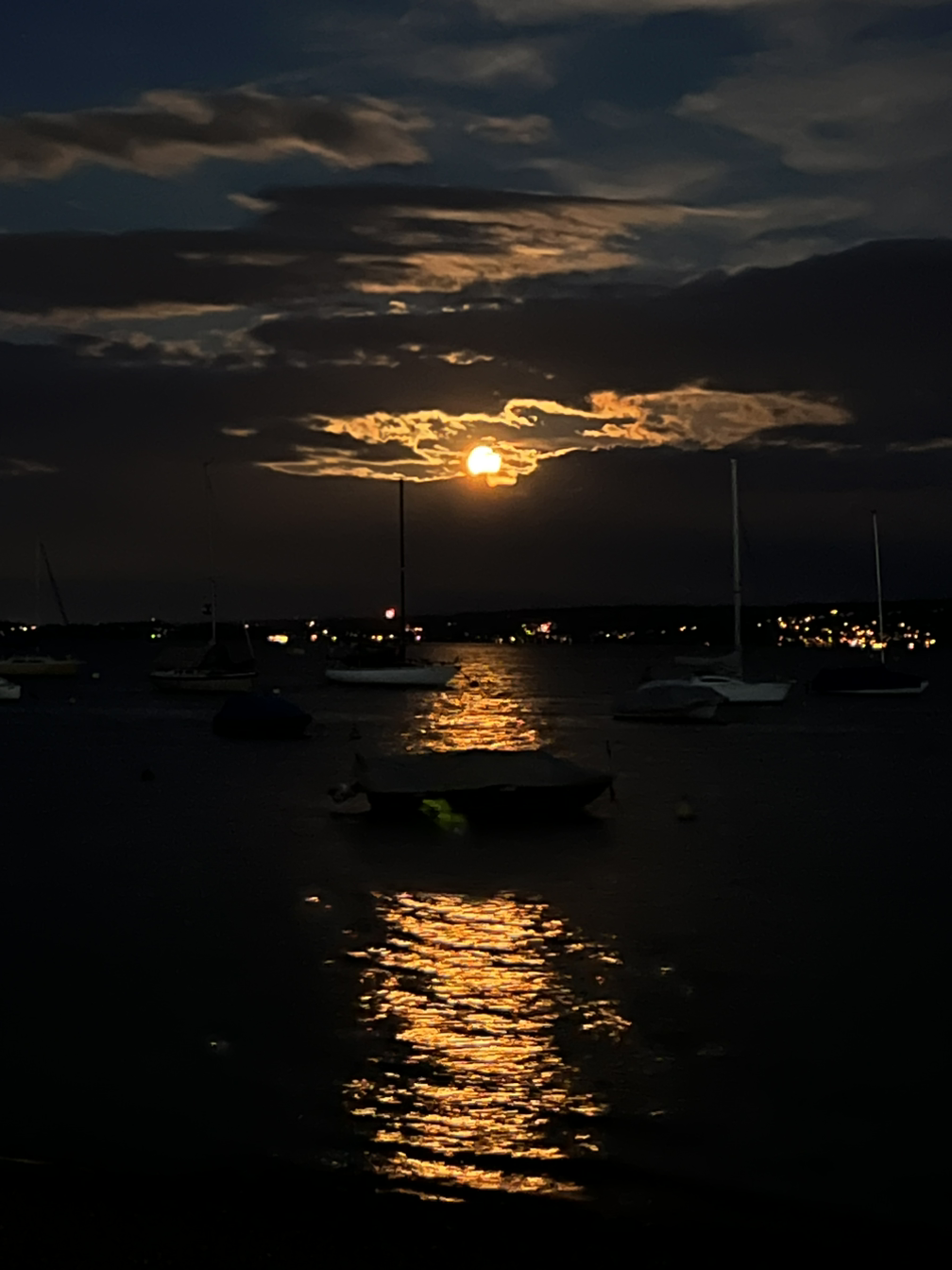 그렇게 기차 시간을 기다리며 호숫가를 걸어가는데 두꺼운 구름 뒤로 거대한 보름달이 숨어 있었다는 것을 알게 되었다. 방금 전까지만 해도 기차 시간 몇 분을 놓칠까봐 시계만 살피고 있었는데, 거대한 보름달과 마주치자 홀린 듯 우리 둘은 달빛에 끌려 다시 호수 가까이로 가서 달을 한참이나 바라보았다.