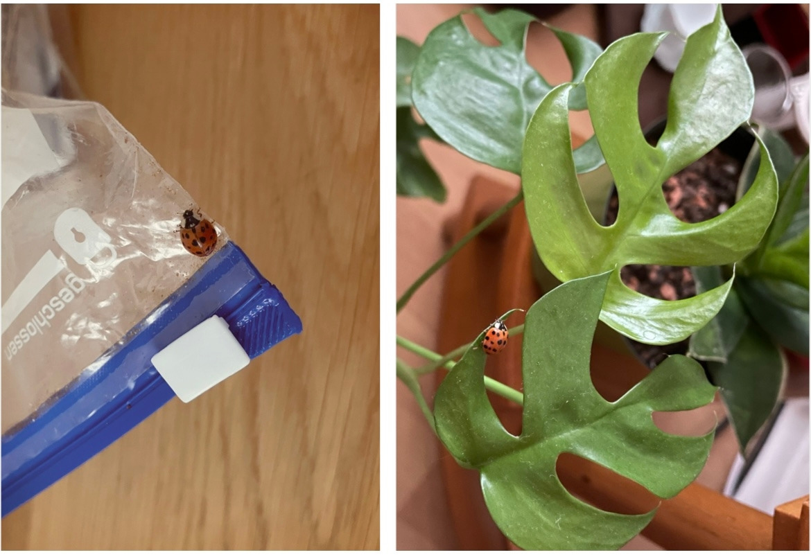 이렇게 꾸준히 물을 챙기고, 흙을 살펴보고, 햇볕과 바람을 확인하는 하루 일과에 더해 한 달에 한두 번씩 님오일을 뿌려주고 말리는 것까지 식물 집사로서의 일과가 늘어났지만 어떻게 보면 벌레는 싫지만 식물은 키우고 싶은 내 바람의 절충안을 찾은 것도 같다. 정확히 말하자면 이제는 그냥 벌레가 아닌 해충은 싫고 익충은 고맙다. 그래서 아주 추운 눈이 내리던 날 갑자기 찾아온 무당벌레 여사를 따뜻하게 우리 집 식물 보금처 위에 올려다 주었다.