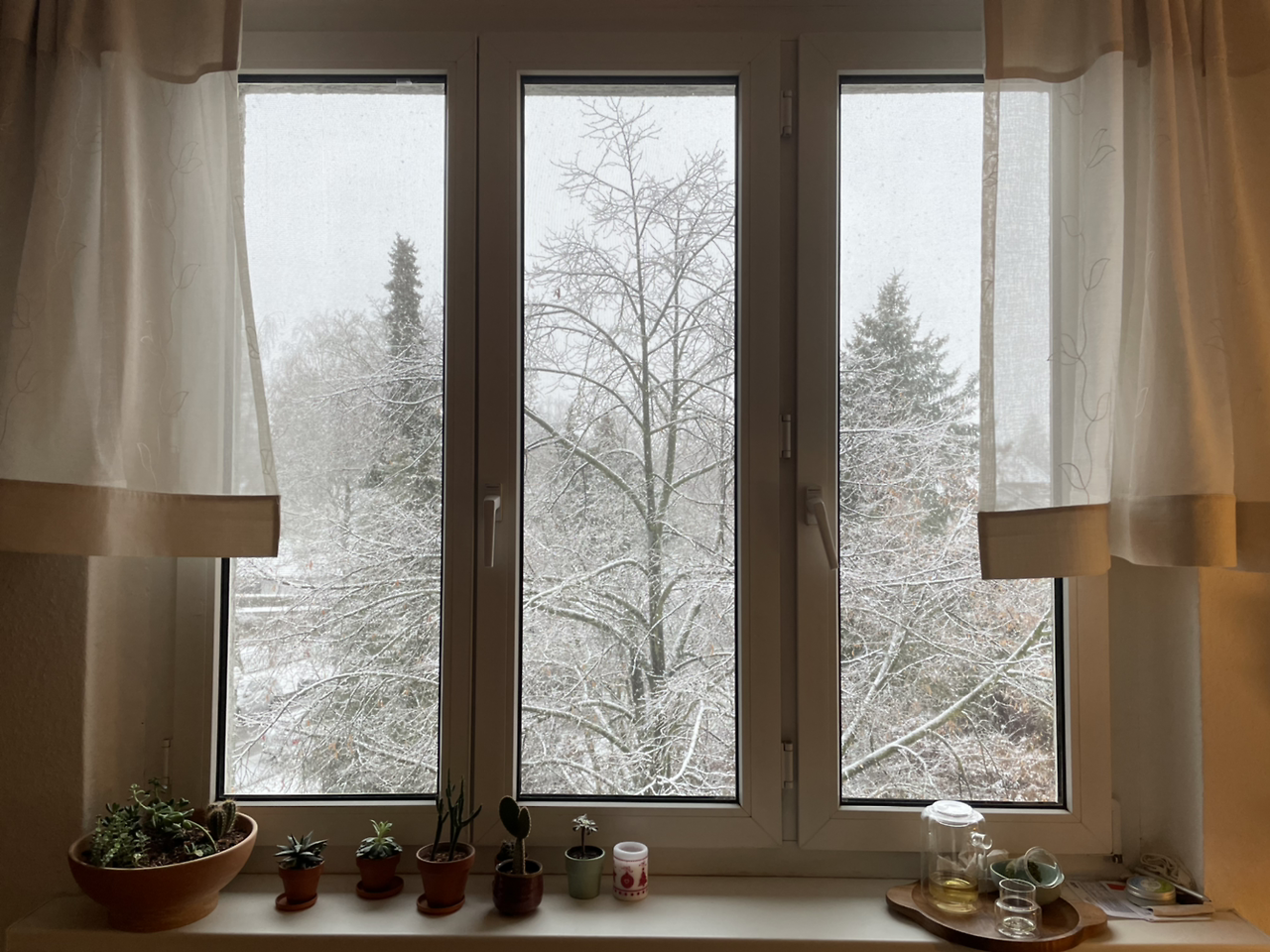 올해는 눈이 무척 자주 온다. 가을과 겨울, 어둠이 긴 독일은 아침이 되어도 창밖이 깜깜한 날이 더 많았다. 그런데 눈이 오는 날이면 눈을 뜨기 전부터 주변이 무언가 환한 느낌을 받는다. 그렇게 눈이 무척 내리던 어느 날, 무언가 방안에 휙 들어와 날아다녔다. 순간적으로 몸을 움츠리고 있다가 가만히 살펴보니 무당벌레 한 마리. 하필이면 플라스틱 봉지 위에 앉아 주변을 살피길래 무당벌레를 가만히 들어 작은 몬스테라 이파리 위에 옮겨 주었다.