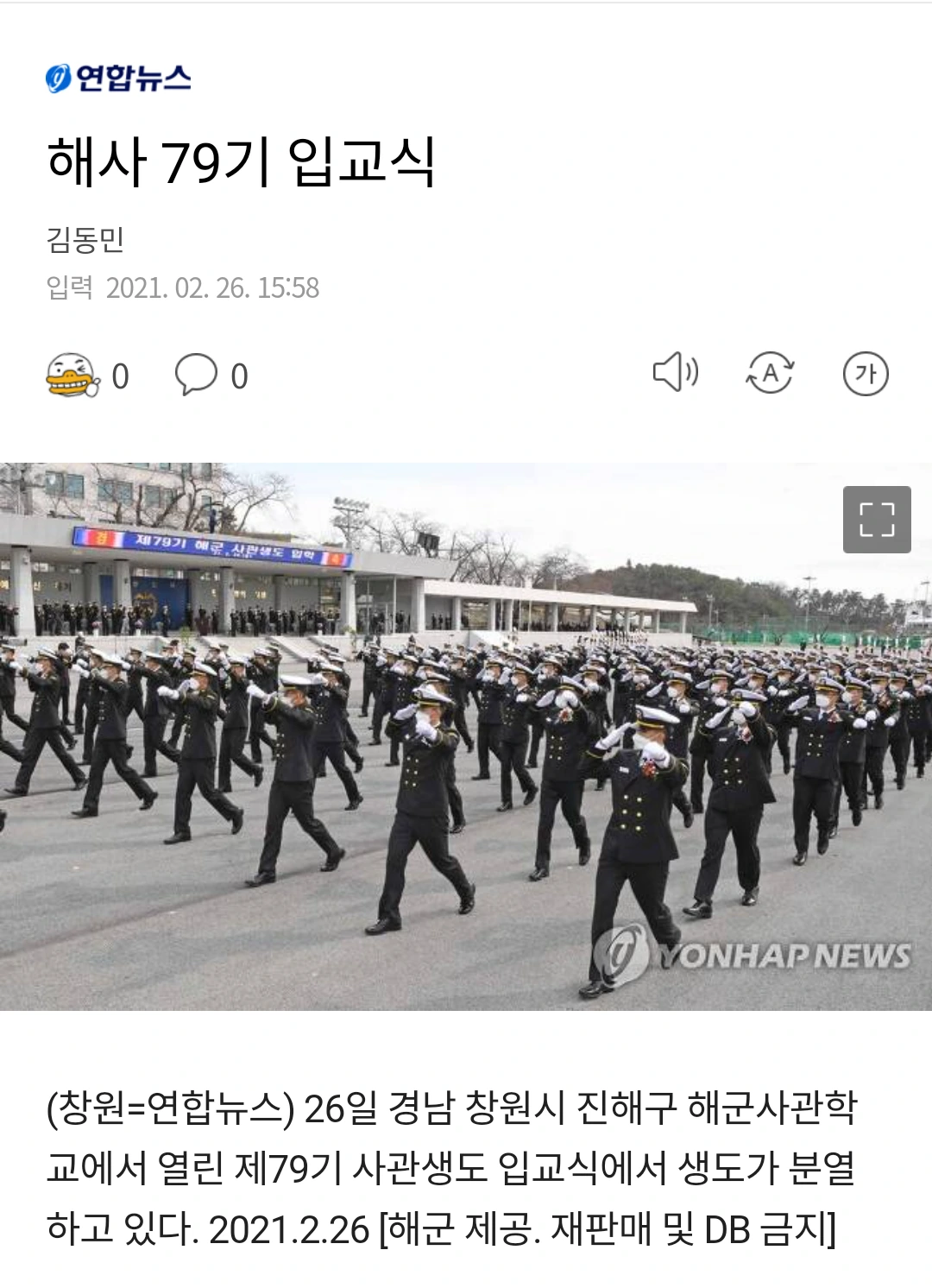 오늘 육사 81기와 해사 79기들이 가입교 기본 군사훈련을 마치고 정식 입교식을 했나 보다. 며칠 차이는 안 나겠지만 공군사관학교도 가입교 기본 군사훈련을 마치고 정식 입교할 거다.