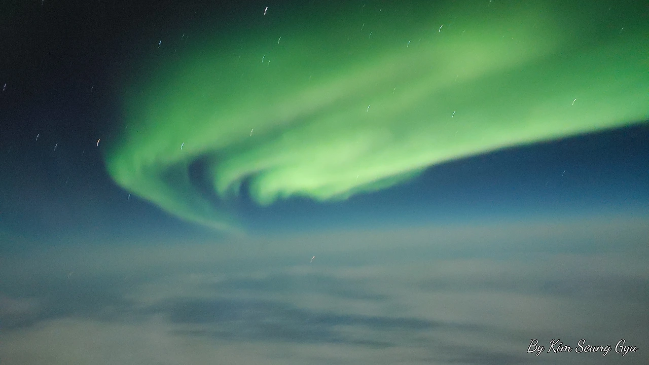 어느덧 비행기는 자정을 넘어 북위 63°를 넘어간다.