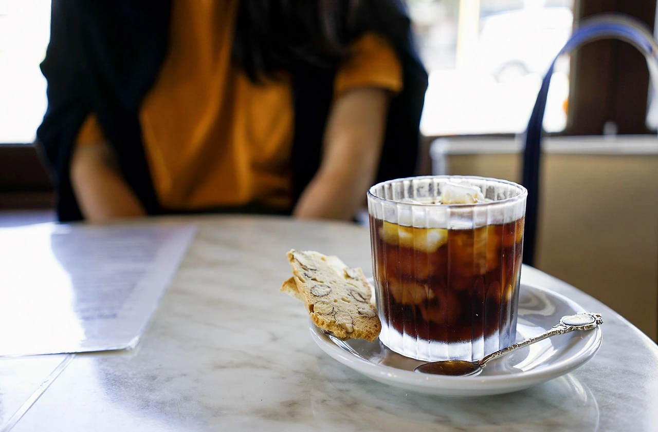 나는 조심스럽게 한 잔의 커피를 주문한다. 시원한 얼음이 가득찬 커피 글라스를 바라보며, 오늘 하루를 시작할 준비를 한다. 아직 텅 비어있는 테이블 하나를 택하고, 커피 한 잔과 함께 나만의 시간을 즐긴다.