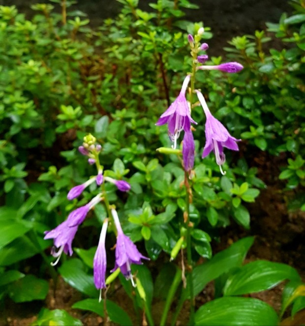 보라색 비비츄도 눈에 들어옵니다. 등잔처럼 대롱대롱 고개 숙이고 피어있는 꽃망울이 참 겸손하고 소담하죠. 그늘을 좋아해서 큰 나무들 밑의 음달진 곳에서 싱그럽게 자라는 비비츄의 꽃말은 좋은 소식, 하늘이 내려준 인연이라고 하죠. 요즘처럼 온 세상이 힘들고 지쳐있을 때 짠하고 좋은 소식 전해지며 코로나라는 먹구름이 가셔지고 새로운 기운과 기상이 쫙하고 펼쳐지면 얼마나 좋을까요.