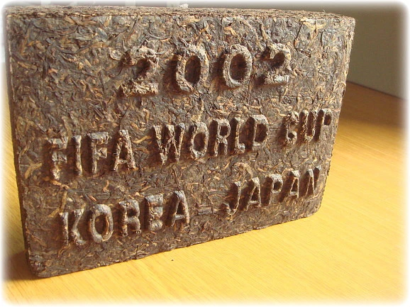 이 차는 2002년 월드컵을 기념해서 만든 500g 숙전차입니다. 훼괴해서 마시기보다는 소장품으로 보관할 가치가 있는 기념품이지요. 차를 마시면서 이런 차도 장식용으로도 의미가 있는 차입니다