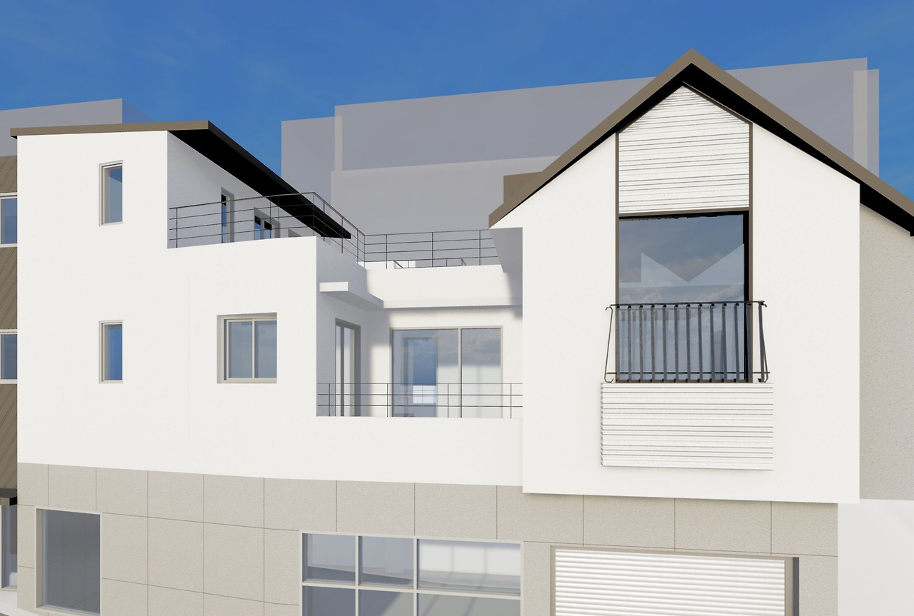 일층에 있는 사업장이야 대지의 형상에 맞춰 나오는 대로 쓰면 될 것이다. 그렇지만 이층에 들어갈 주택은 사정이 다르다. 아파트보다 거주 여건이 좋아야만 단독주택에 살 이유가 되기 때문이다. 아파트보다 살기 좋은 상가주택, 한정된 조건에 끼워 넣듯이 들어가는 주택이 과연 그런 만족도를 얻을 수 있을까? 평면을 구성할 대지의 폭에 여유가 없는 데다 서향으로 앉혀야 할 상황이기 때문이다.