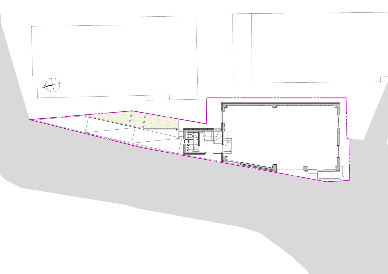 건축주는 유통업을 하고 있어서 일층은 사업장, 이층을 주택으로 쓰기 위해 이 대지를 매입했다고 한다. 대지 조건으로 볼 때 땅값은 비교적 싸게 지불하지 않았을까 싶다. 누구라도 이런 조건의 땅에 제대로 쓸 수 있는 건축물이 들어설 것이라 생각할 수 있을까?