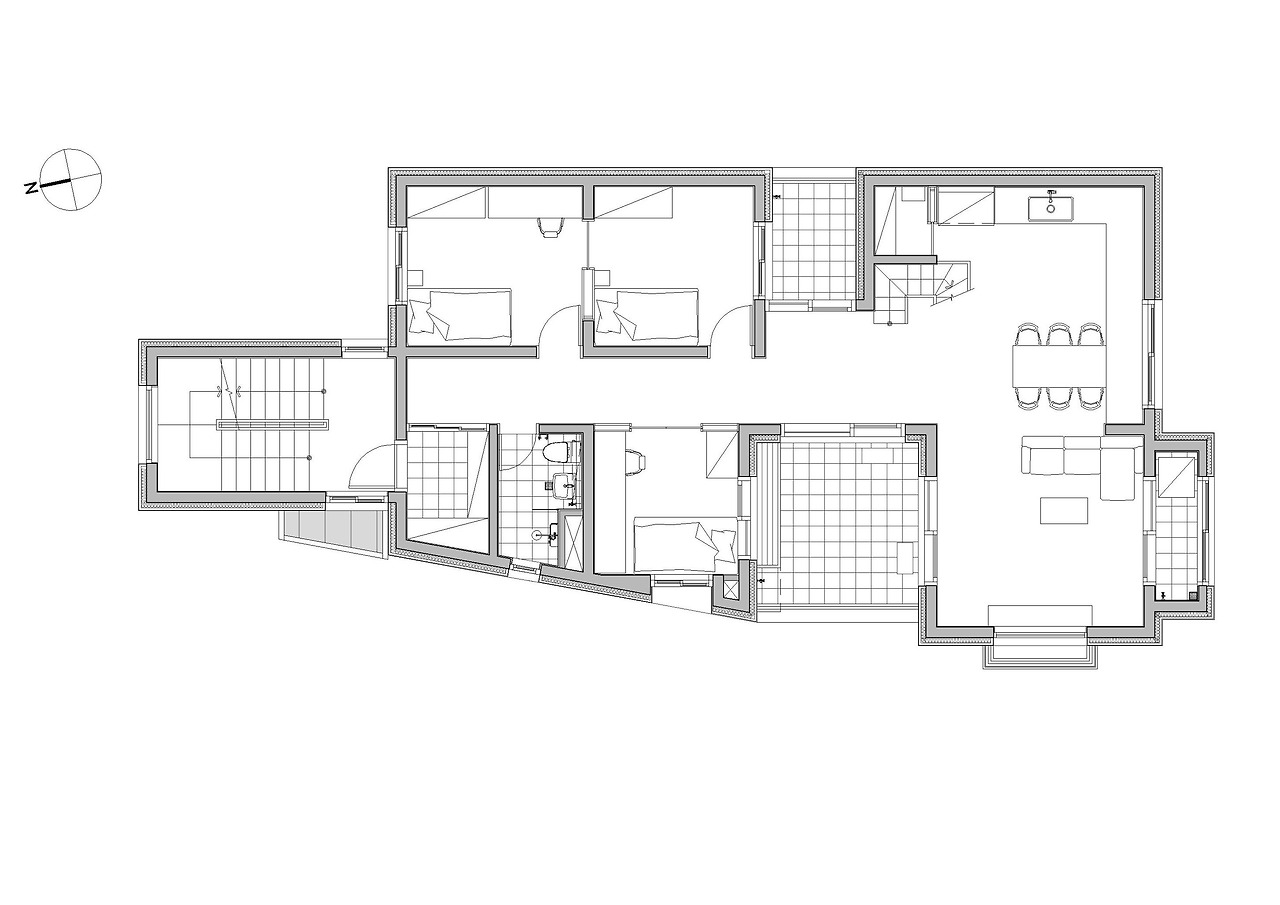 건축주의 가족 구성은 큰 아이 둘은 독립해서 살고 있고 늦둥이가 있어서 방이 네 개나 있어야 한다. 일상에서는 아이 둘과 부부가 지내고 독립해서 지내는 아이들이 오면 모두 여섯 식구가 써야 하는 집이다. 방이 세 개만 있는 아파트는 이 가족의 구성원에게는 불편한 집이었겠다.