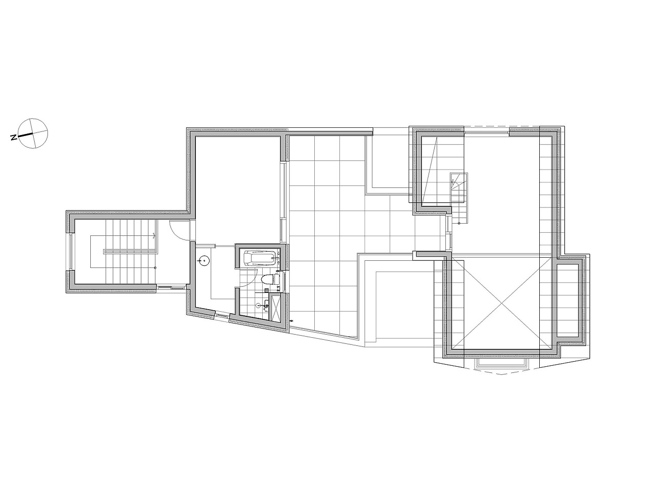 윗마당은 남향의 햇살을 드는 큰 방과 이어진다. 거실에서 다락으로 이어지는 동선이 마당으로 바로 연결되니 윗마당은 다양한 쓰임새를 가지게 된다. 거실과 다락, 다락과 윗마당의 관계 맺기는 양명헌의 풍부한 일상을 담아낼 것이다.