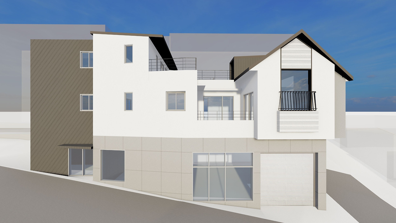 異形이형의 대지에 집다운 집을 앉히기가 쉬운 일이 아니었다. 작업의 난이도가 꽤 있었지만 완성된 설계안은 건축주도 만족해하니 공사만 잘 되면 좋은 집이 될 것 같다는 확신이 든다. 경사를 가진 도로에 면한 서향의 대지는 너비도 여유가 없었지만 좋은 집이 가져야 할 조건이 충족된 설계안이 나와서 이를 데 없다.