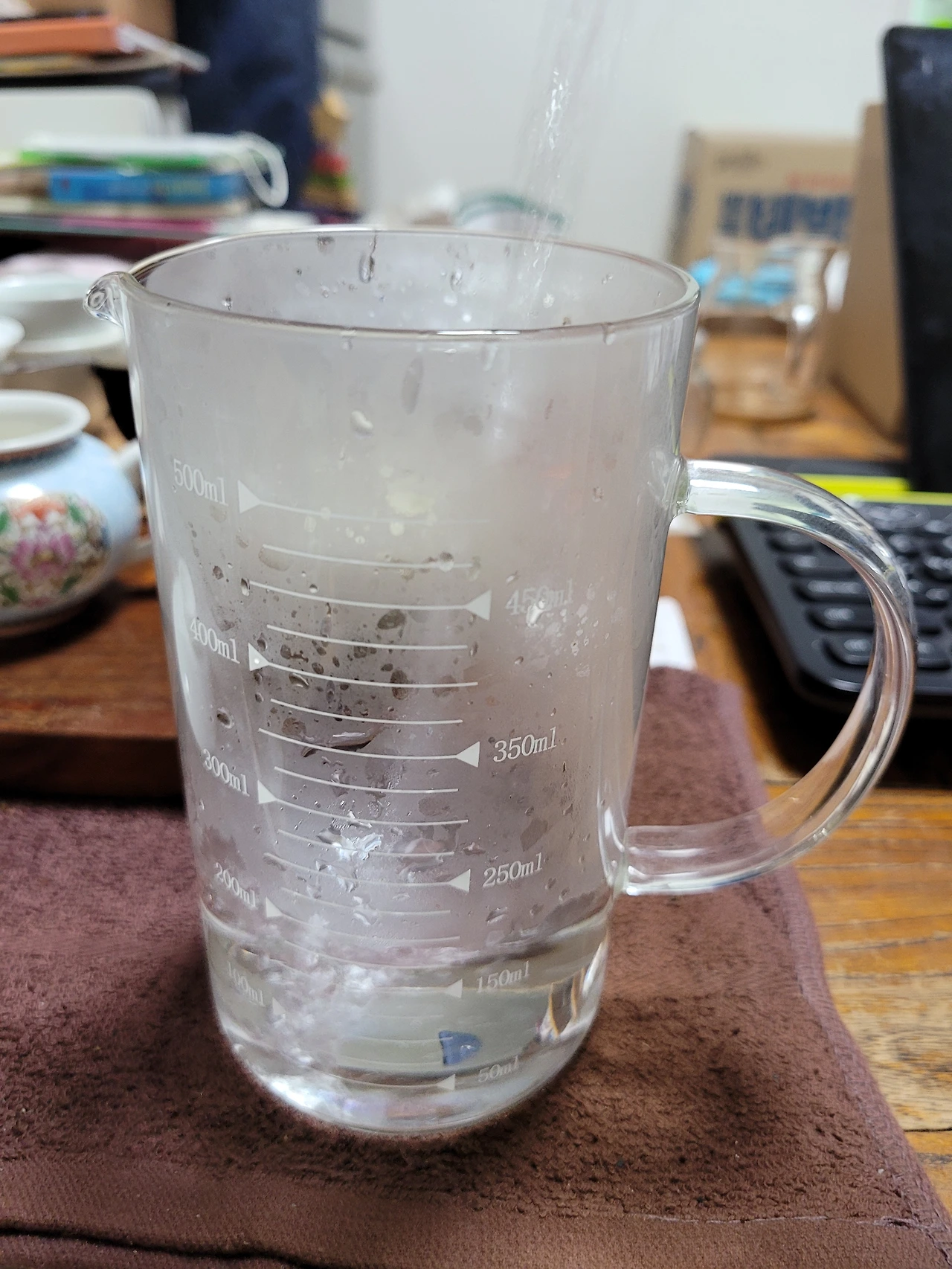 또 하나의 팁은 끓은 탕수를 높이 들어서 숙우에다 거품이 나도록 부어서 쓰라는 것이다. 그렇게 탕수를 부으면 산소가 들어가서 더 맛있게 차가 우려 진다고 한다. 과연 그럴까 의심할 필요 없이 전문가가 시키는 대로 차를 우렸다.