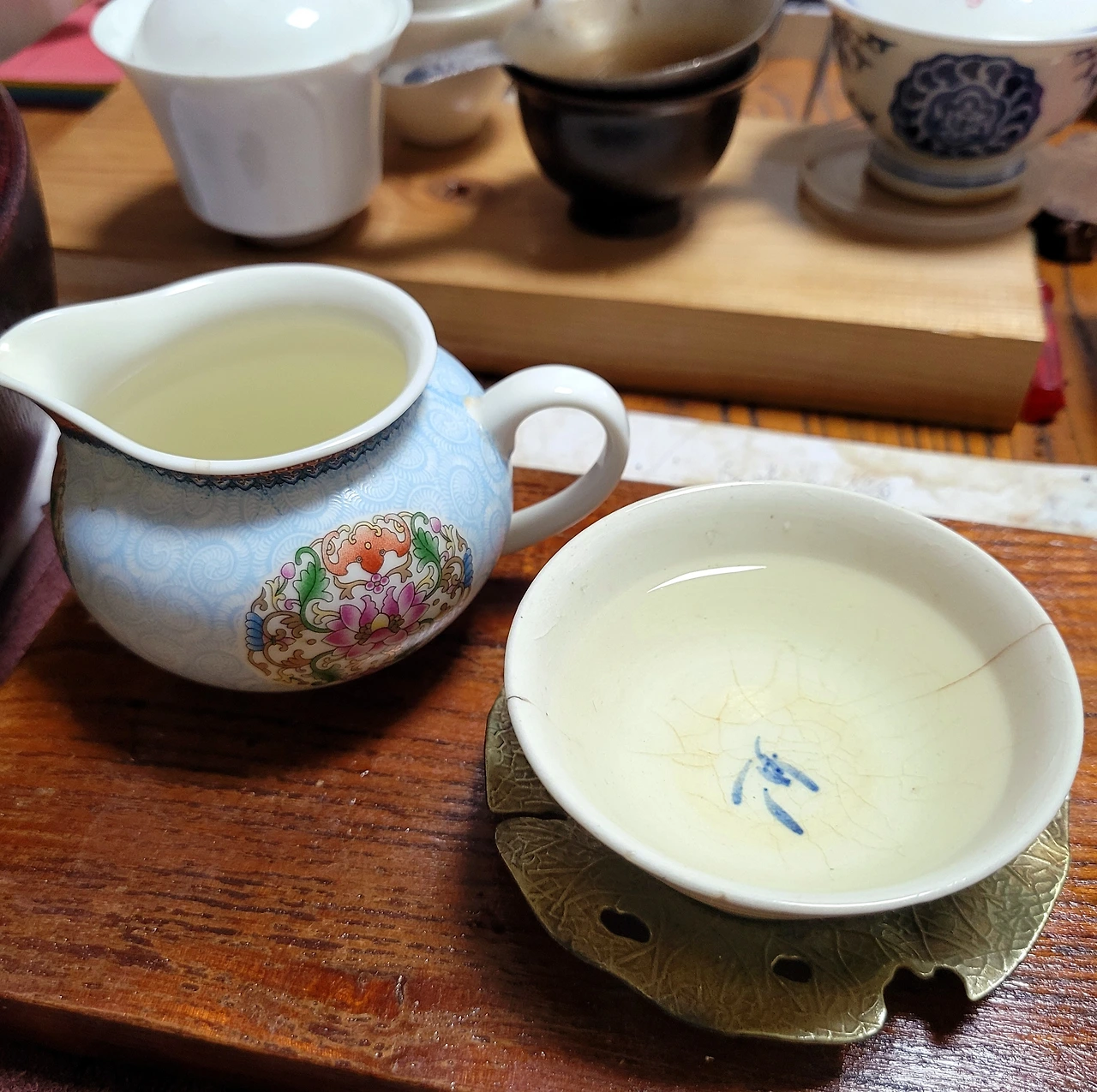 찻물이 끓자 다우는 안길백차를 우리는 팁을 알려주었다. 안길백차는 차의 특징인 함량이 높은 아미노산을 효과적으로 음미하기 위해서 물 온도를 낮추어야 한다는 것이다. 우전차인 경우 찻물을 한소꿈 식혀서 식혀 내는 게 일반적인데 이 차는 50도까지 내려야 한다고 했다.