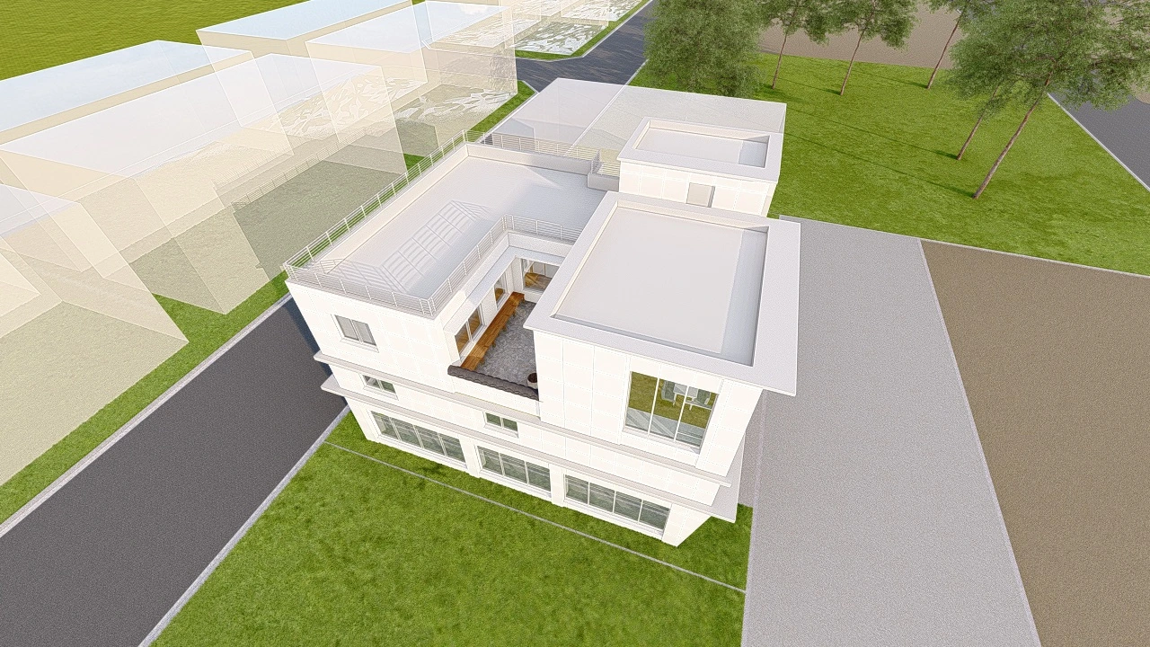 3층에 있는 단독주택, 분명 단독주택으로 볼 수 있지만 제대로 평면을 구성해 내는데 한계가 있다. 우선 이층 평면의 틀이 그림을 그리는 캔버스가 된다. 아래층과 연결되어 있는 계단실에 현관이 고정되고 인접대지와의 관계도 설계 작업에 제약을 준다. 과연 아파트보다 낫고 땅에 지어지는 단독주택 부럽지 않은 집으로 지을 수 있을까?