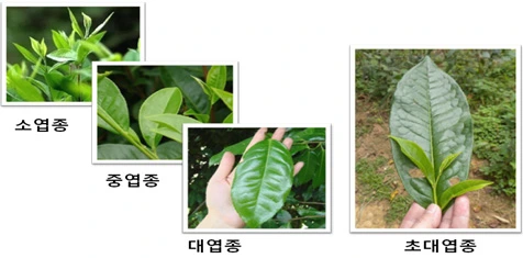 大葉種대엽종 차나무는 중국의 호북성(胡北省), 사천성(四川省), 운남성(雲南省)일대에서 재배된다. 잎의 길이가 13~15cm, 너비는 5~6.5cm, 나무의 높이는 5~32m 정도까지 자란다. 小葉種소엽종 차나무는 중국 동남부와 한국, 일본, 대만 등지에서 많이 재배되고 있다. 잎의 길이가 4~5㎝ 정도, 나무높이가 2~3m 내외로 관리하기 편하며 품종을 개량하여 다량 생산하고 있다. 중엽종은 대엽종과 소엽종의 중간 정도로 보면 되겠다.