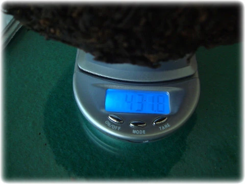 500g으로 만든 차를 저울에 올려보니 제게 온 것은 430g이 조금 넘는군요. 70g 정도가 세월의 풍상에 날아갔습니다 ㅎㅎㅎ 70g만큼 맛은 더 깊어졌겠지요?