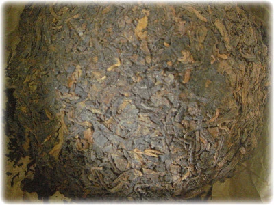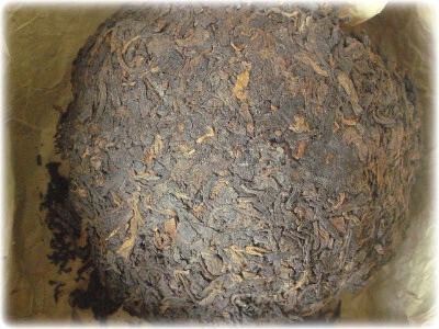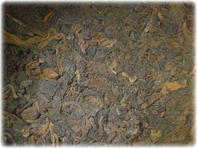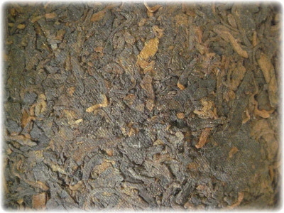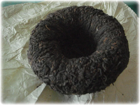 포장지를 벗겨보니 '내 나이를 묻지 마세요' 하듯 나이 값을 보여주듯 진년차의 풍모를 보여줍니다. 차엽은 아주 어린잎인데 긴압은 느슨해져 차를 툭툭 치니 찻잎이 그냥 떨어집니다. 별도로 보이차 칼을 쓸 필요가 없을 정도로 익다 못해 삭아가는 상태입니다