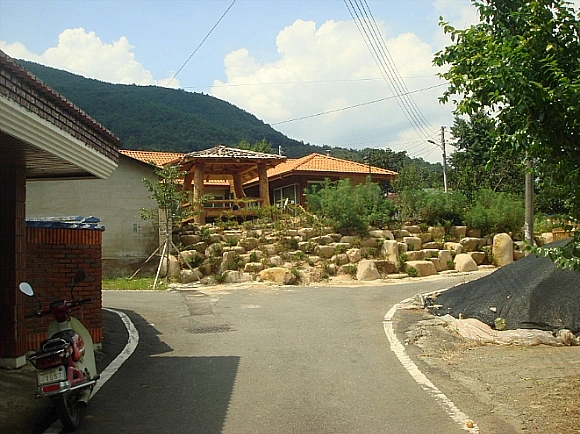 마을을 들어서면 길에서 살짝 올라선 마당에 나무로 만든 소박한 정자가 보이고 '뽄'나지 않는 집의 지붕이 살짝 보인다. 이층 집이었다면 허우대가 좀 있는 '뽄'나는 집이 보였을 텐데 하고 설계자는 아직 남아있는 아쉬움을 삼키며 집으로 들어선다. 만약 설계자의 욕심대로 2층으로 높이 지었었다면 이웃해 있는 촌집들이 얼마나 속상해했을까?