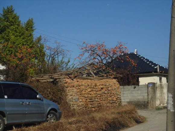 감나무, 감이 달려 있어야 감나무라고 알지 이 감이 떨어지고 나면 감나무를 모르는 사람에게는 그냥 나무일뿐이다. 흙과 돌로 만든 창고의 흔적도 이 공사를 하면서 허물고 나면 언제 이곳에 이런 집이 있었는지 알지 못할 것이다. 불편하다며 옛집을 허물어 버리고 짓는 이 시대의 건축물은 아무리 잘 지어도 싸구려집이다.