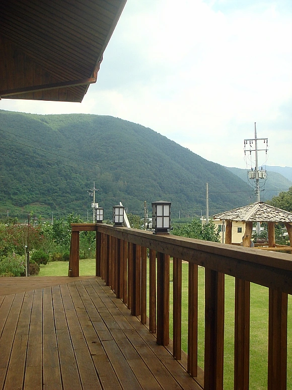 데크에서 남쪽으로 바라보이는 풍경이다. 저 계곡 깊숙한 곳에 무릉도원이 있다고 믿는.... 가까이에 있는 집들은 보기에 좀 거시기하지만 좋은 이웃이 있는 마을에 정을 붙이고 산다고 생각하면 그만한 복이 있을까?