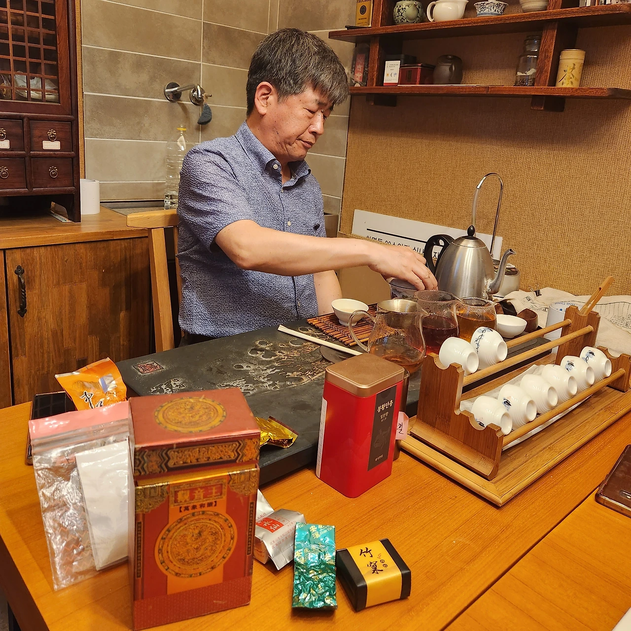 그런데 정말 희한한 게 보이차를 주로 마시게 되면 아무리 좋은 청차를 가지고 있어도 손이 잘 가지 않습니다. 오늘 청차를 준비해 온 다우들도 청차는 구입하고 빨리 마셔야 하는데 꽤 묵혀두고 있었더군요. 마시지 않고 묵히면 금이 구리가 되는데...^^