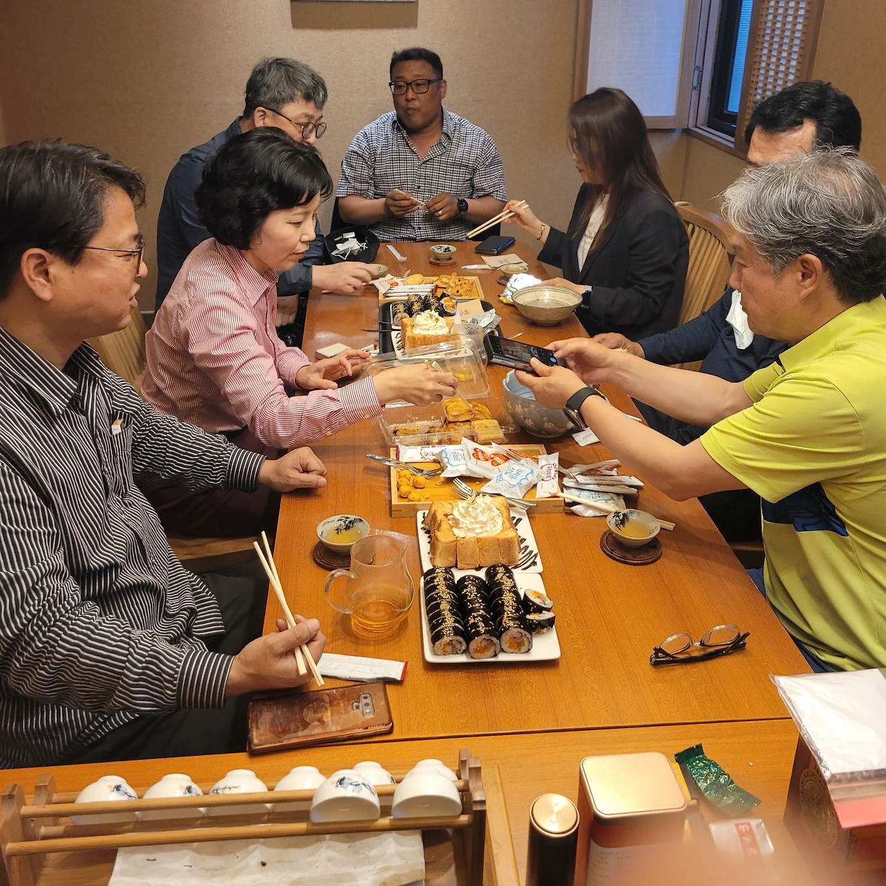 다연회 베스트멤버 11명, 언제나 열한 분이 다 함께 하는 찻자리를 가질 수 있을까요? 오월다회에도 세 분이 빠진 여덟 분이 함께 했습니다. 묵향님은 근무 중, 백공님은 더 중요한 약속, 산수유님은 힘내서 치료를 받느라 서울로 가셨지요.