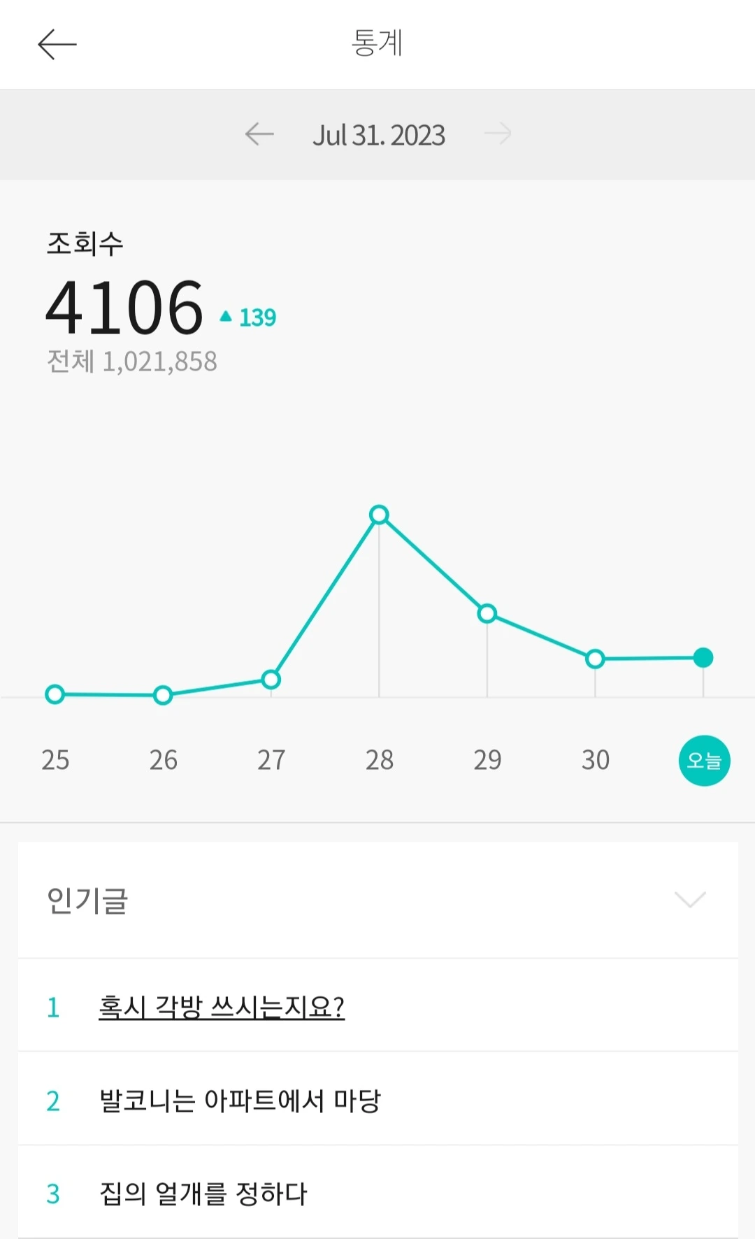 제 글은 제 일인 건축사로서 ‘단독주택’이나 ‘주거 문화’를 주제로 삼고, 좀 더 많은 독자를 제 브런치스토리 사이트로 모시기 위해 ‘보이차 차 생활’을 부제로 삼았습니다. 그동안 제 블로그-티스토리 무설지실에 써 둔 글을 정리해서 브런치스토리에 올린 게 이 글까지 257개가 되는군요. 제 글은 소위 감성 에세이가 아니어서 독자층이 넓지 않아서 백만 조회가 제게 주는 의미가 남다른 게 사실입니다.