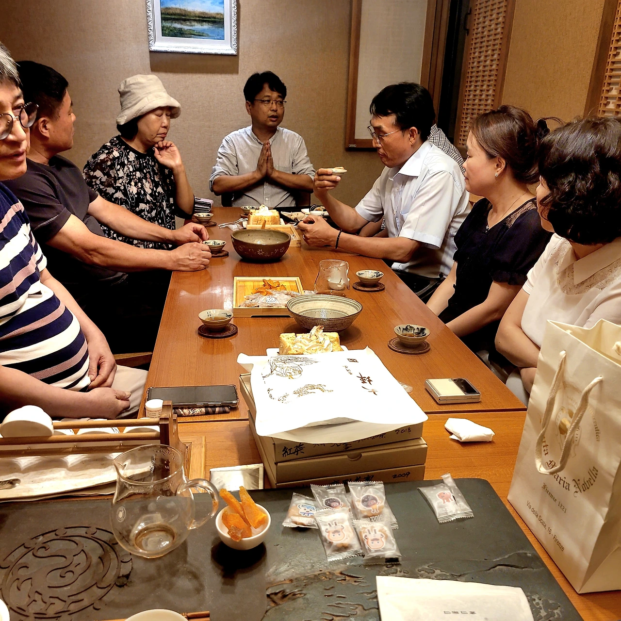 다회 운영에 대한 다우들의 의견은 다들 만족하다고 합니다. 팽주를 돌아가며 하면서 각자의 차 생활을 다우들과 이야기하자고 하는 의견이 있습니다. 아직 팽주를 맡아서 하는 건 어렵다고 하는 다우도 있지만 기회를 나누도록 조율해 보도록 하겠습니다.