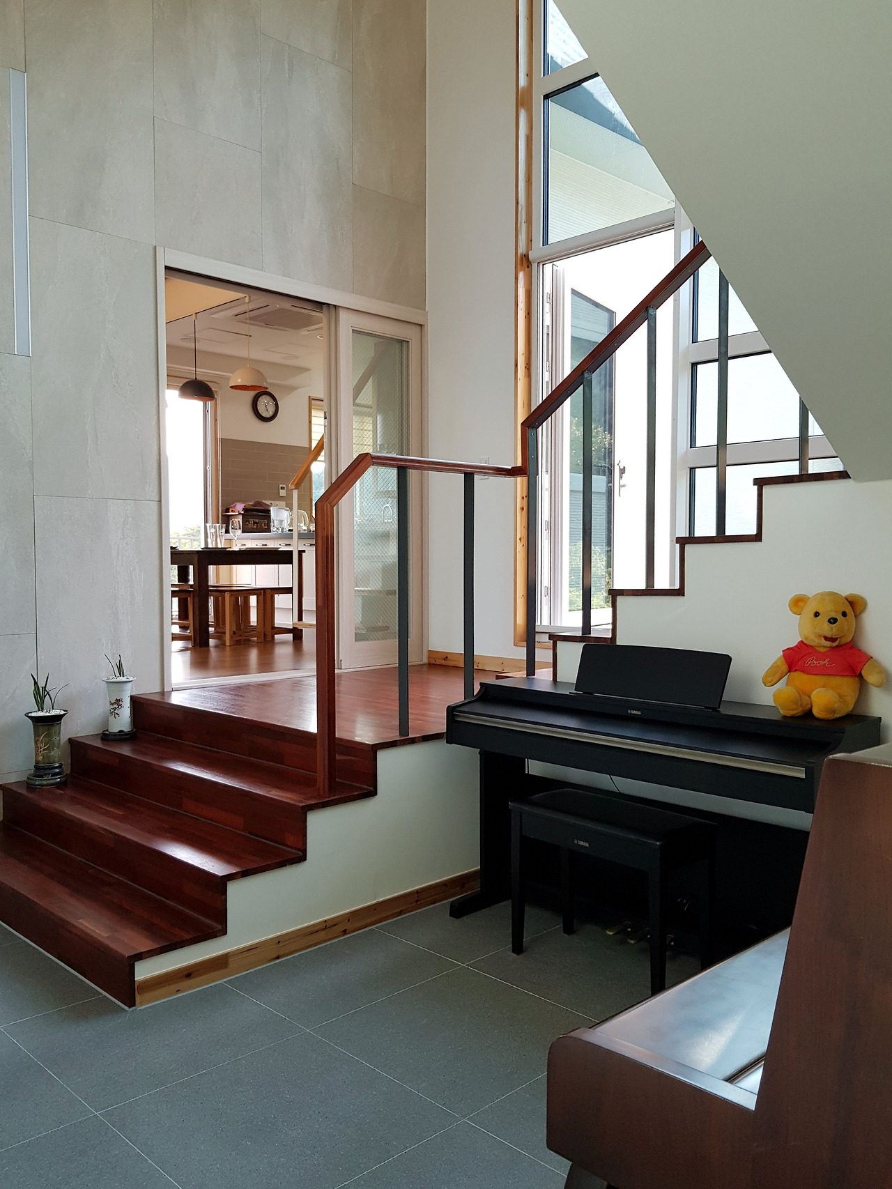 필자 설계 부산 이입재-시그니쳐 홀을 가운데 두고 집의 좌측이 거실채, 우측이 침실채이다 (설계 도반건축사사무소 김정관)