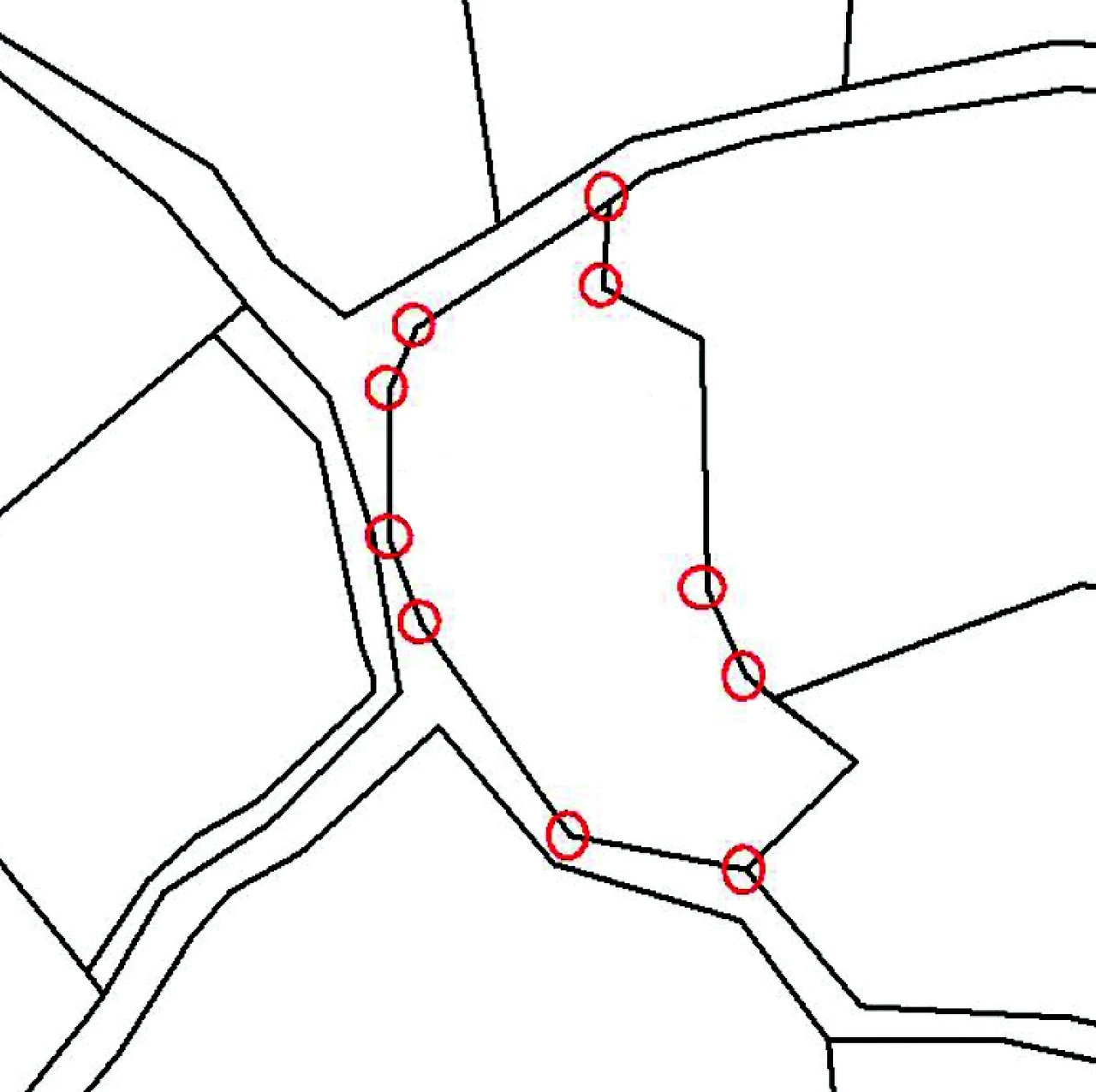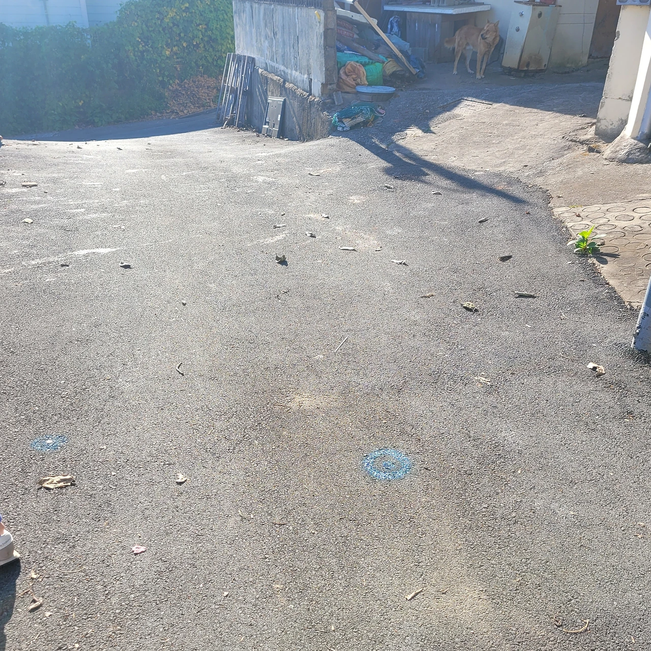 폭이 좁은 도로를 임의로 우리 대지로 확장해서 도로 한 복판에 경계점이 찍혀져 있다.