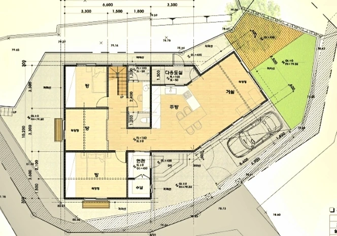 부리님 집의 얼개가 거의 다듬어졌다. 대지 현황 측량도를 받아 건물이 앉을 수 있는 범위를 파악했을 때만 해도 암울했었다. 그런데 이만큼 정리가 되고 보니 그동안 쉰 채가 넘는 단독주택을 설계하면서 축적된 내공이 만만찮다는 걸 알게 된다.