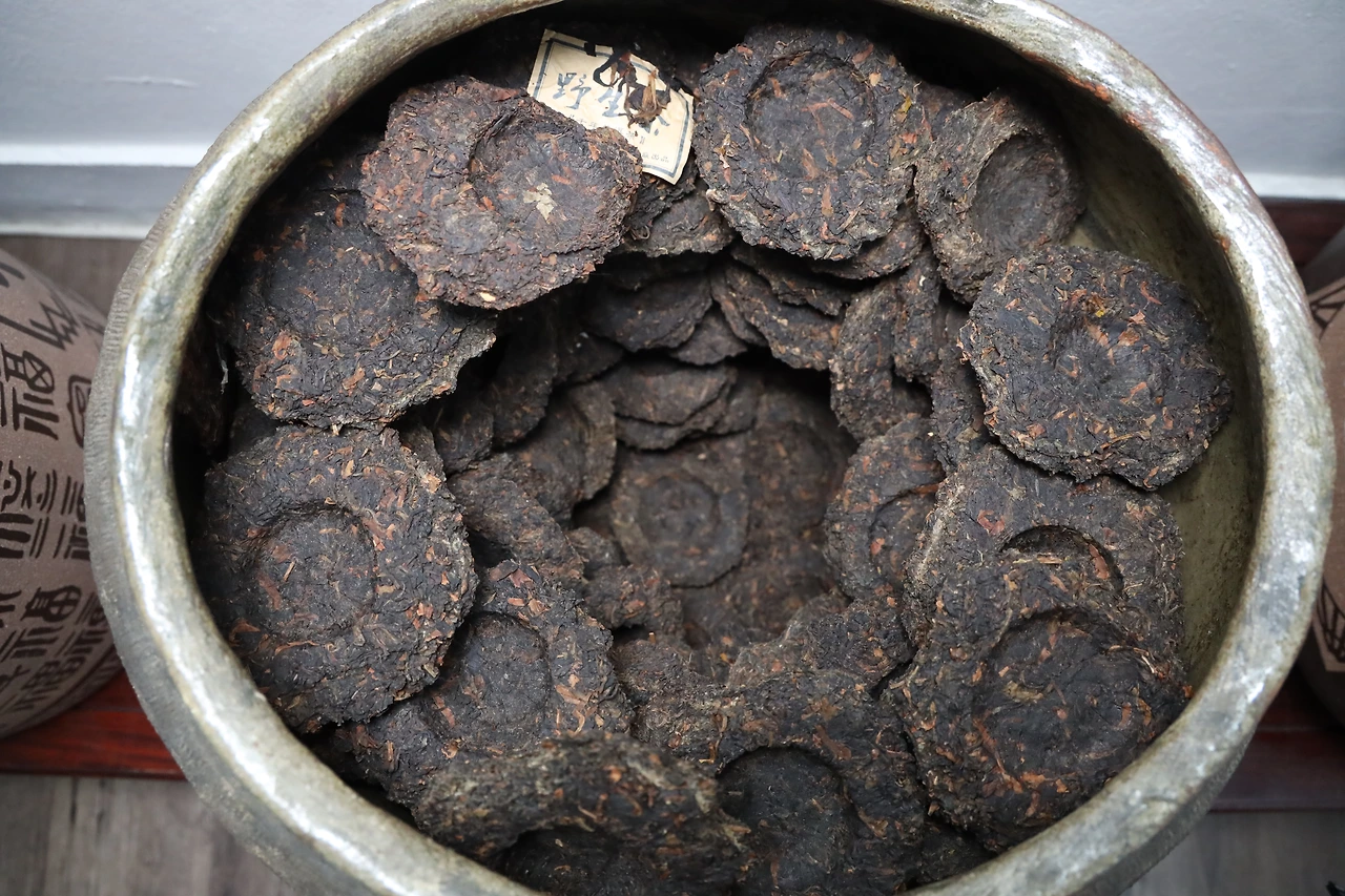 천년보이차 이인종 대표는 야생차에 각별한 관심이 있어 그동안 마신 차의 배꼽 부분만 남겨 이렇게 보관하고 있다