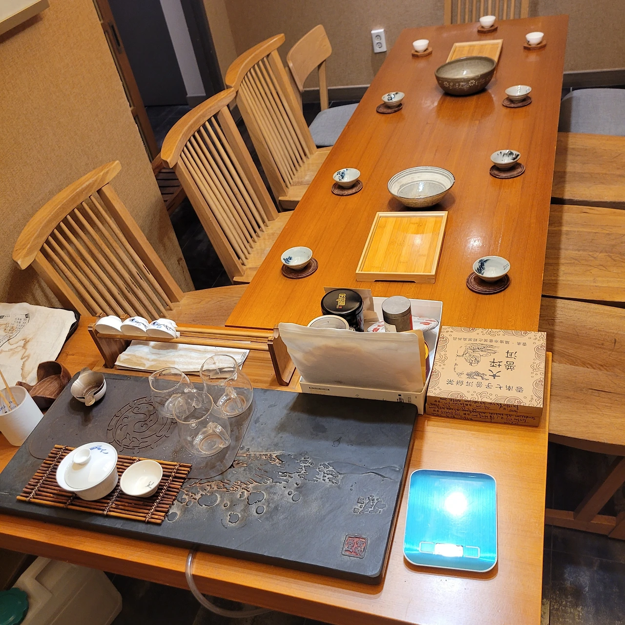 찻자리가 시작되면 팽주의 일은 인원수에 비례해서 노동의 강도가 결정되지요. 180cc 대개완이 탕수가 거듭되는 만큼 열기가 축적되어 검지에 화기가 전달됩니다. 속으로 ‘앗... 뜨거워’하며 차를 우리고 또 우리지만 이런 재미는 팽주가 손가락에 가벼운 화상을 입을지라도 감내할 수 있답니다.