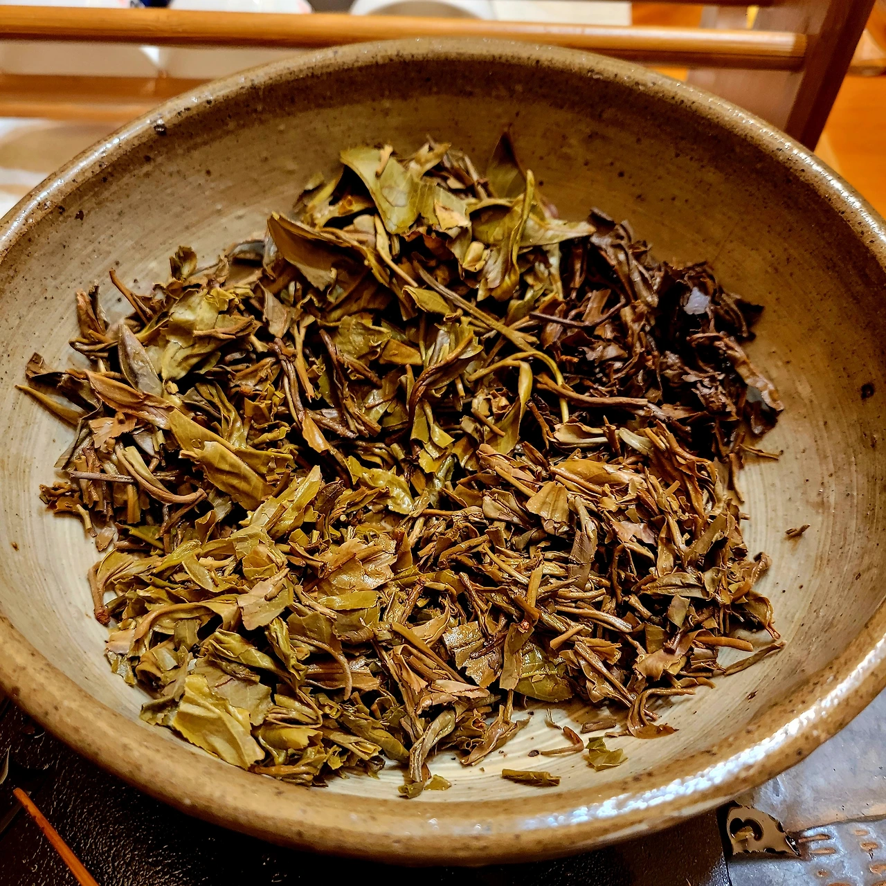 오늘 다회에서 마셨던 첫물차의 엽저를 모았다. 첫물차의 어린 잎이 입에 침이 고이게 한다