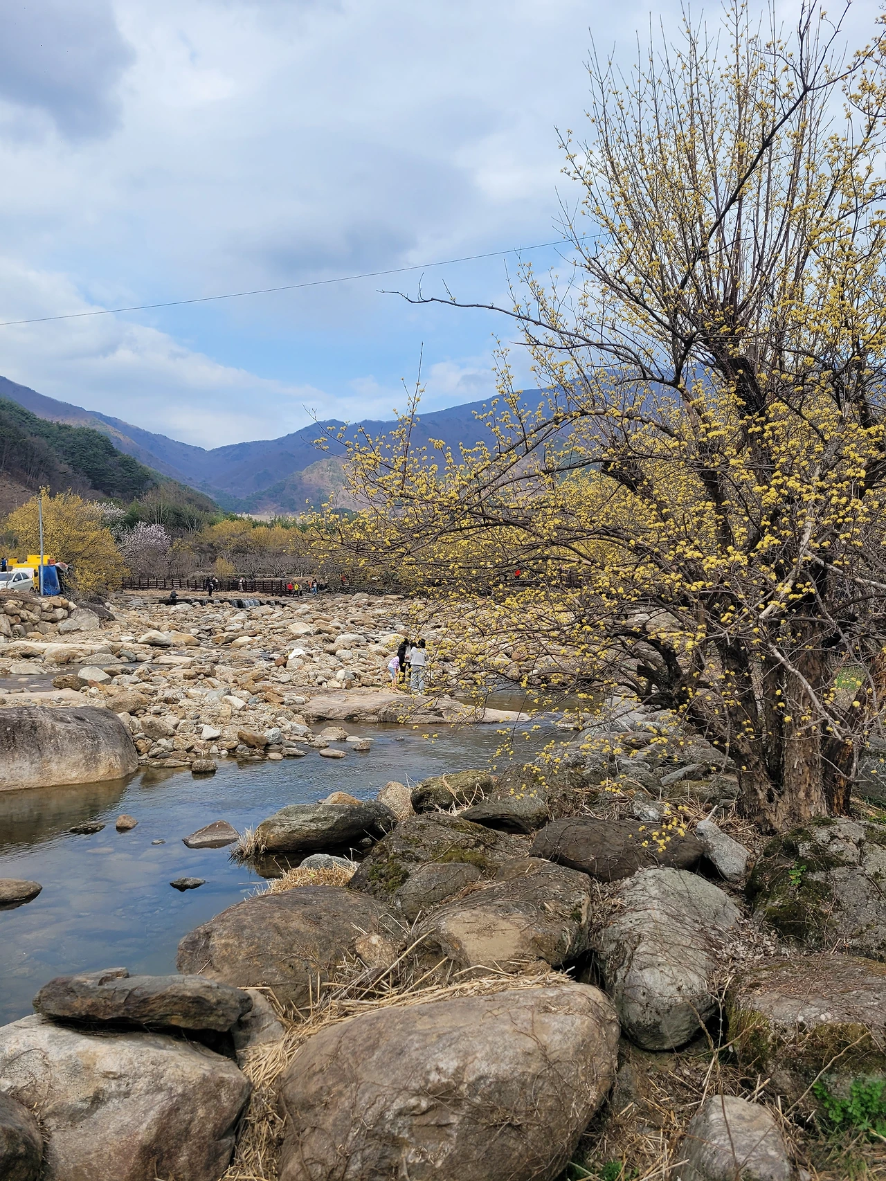 구례 산수유마을은 우리나라에서 가장 아름다운 마을로 지정될 만큼 정취가 아름다웠다. 마을 가운데로 개울이 흐르는데 지리산에서 내려오는 맑은 물과 만개한 산수유가 선경을 만들고 있었다. 이상 기온 때문에 남도길이 아직 봄꽃을 보기 어려웠는데 산수유마을에 오니 봄이 여기에 갇혀 있는 게 아닌가 싶었다.