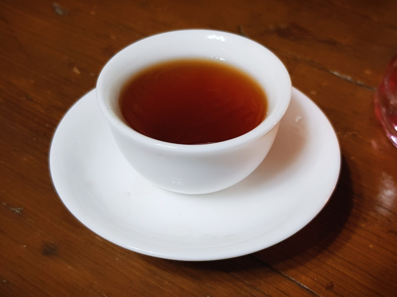 찻잔도 초미니라 그렇게 작은 잔에다 마시는 것도 처음 보았다. 중국차는 대체적으로 큰 잔보다 작은 잔을 많이 쓰는데 엄지손톱만한 잔으로 마시기도 한다. 주로 노차나 아주 진하게 우리는 농차를 마시기 위해서는 아주 작은 잔이 필요하다고 한다. 커피도 에스프레소는 작은 잔으로 마시는 걸 보면 되겠다. 잔이 작을수록 차를 입안에 넣어서 혀로 굴리고 쩝쩝대기도 하면서 온전한 차의 향미를 음미하는 모습을 떠올려본다.