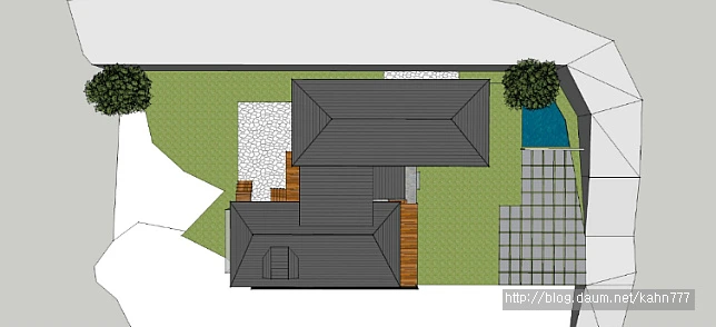 아파트 평면을 변형시켜 집의 내부공간을 구성하면 생활의 중심이 실내에서 그치게 된다. 내부공간과 관계맺기가 되어 있지 않은 외부공간은 쓰임새에서 고립되고 만다. 잔디 깔린 큰 마당은 기능이 담기지 않아서 관리 부담만 늘어날 뿐이다. 잔디관리가 얼마나 어렵고 힘 드는지 직접 당해보지 않은 사람은 알 수가 없다.