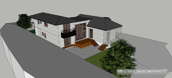 삼대가 적선을 해야 남향집을 얻을 수 있다고 했다. 계단홀을 중심으로 거실동과 침실동으로 채 나눔을 하고 남향에 많이 면하기 위해 집을 펼쳤다. 침실동의 동쪽에 전통구들을 들인 한실 서재는 툇마루로 연못이 있는 정원으로 드나들 수 있다.