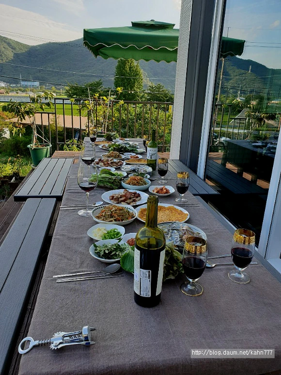 마당을 바라보며 데크에서 가진 자리를 마무리하니 거실에 저녁상을 따로 봐놓으셨다. 이미 충분히 배를 채웠는데도 한국사람은 밥을 먹어야 된다며 차린 맛깔난 진짜 저녁을 먹었다. 후식으로 과일에다 보이차까지... 다시 또 이런 저녁을 먹을 수 있을까?