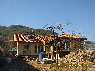 시골 마을이 다 그렇겠지만 이곳도 그냥 사람이 편히 사는 분위기이다. 어떤 집은 기와집이고 그 옆 집은 슬래브집이며 슬레이트로 지붕을 이은 집도 있다. 오래된 마을의 한가운데 집 지을 터를 얻어서 오래된 기와집을 헐고 이 집을 얻었으니 집주인은 그냥 고맙고 죄송스럽지 않았을까?