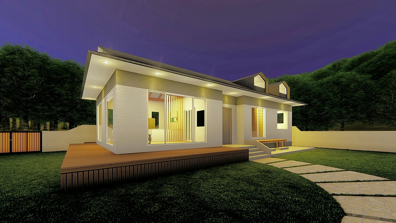 필자 설계 단독주택 지산심한 3D 모댈링-부부만 사는 집이지만 다락에 손님방을 두어 손주가 오면 편히 묵어갈 수 있도록 설계했다. 며느리와 사위가 편히 다녀갈 수 있다.